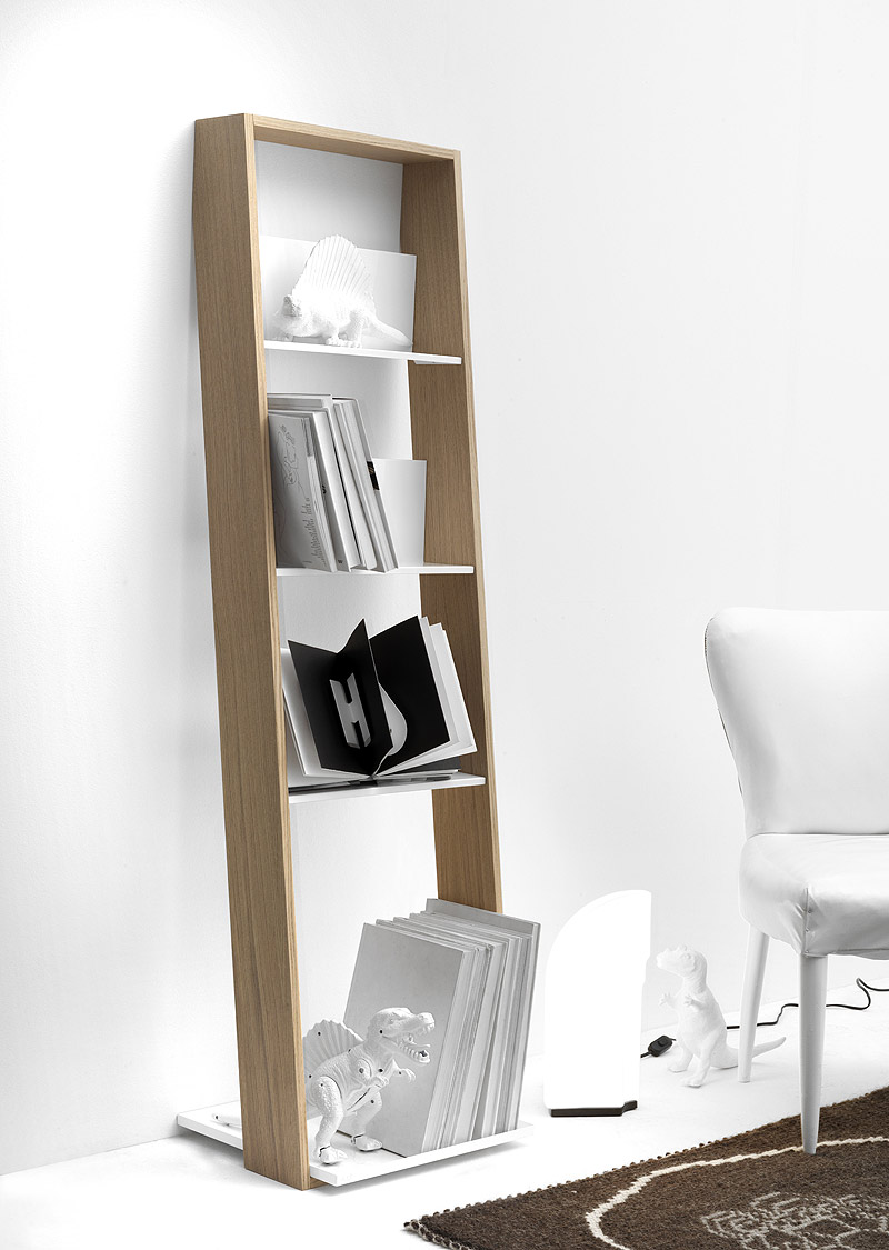 Siguiendo el mismo concepto de las anteriores creaciones de Macey, este sistema de estantería está realizado con madera de roble barnizada y metal lacado, bajo un sencillo simple y limpio. Medidas: 43 x 21 x 60 h cm.
