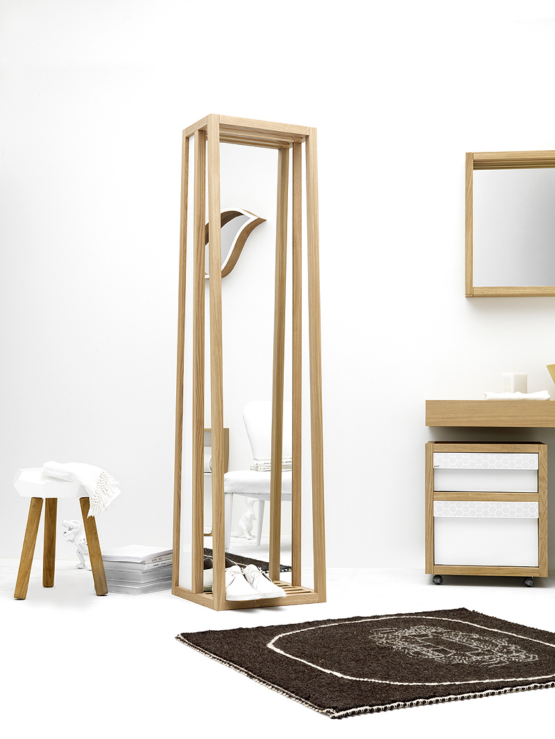 Un nuevo diseño de Jethro Macey es este toallero independiente de madera que no necesita sujetarse a la pared. Medidas: 60 x 20 x 80 h cm.
