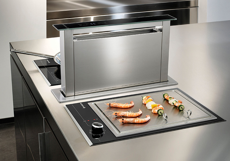 Diseñada especialmente para su instalación en cocinas en isla, destaca por su gran discreción ya que con sólo pulsar un botón se puede ocultar después de utilizarla. Además, permite ajustar el panel de aspiración a las necesidades de cada momento.
