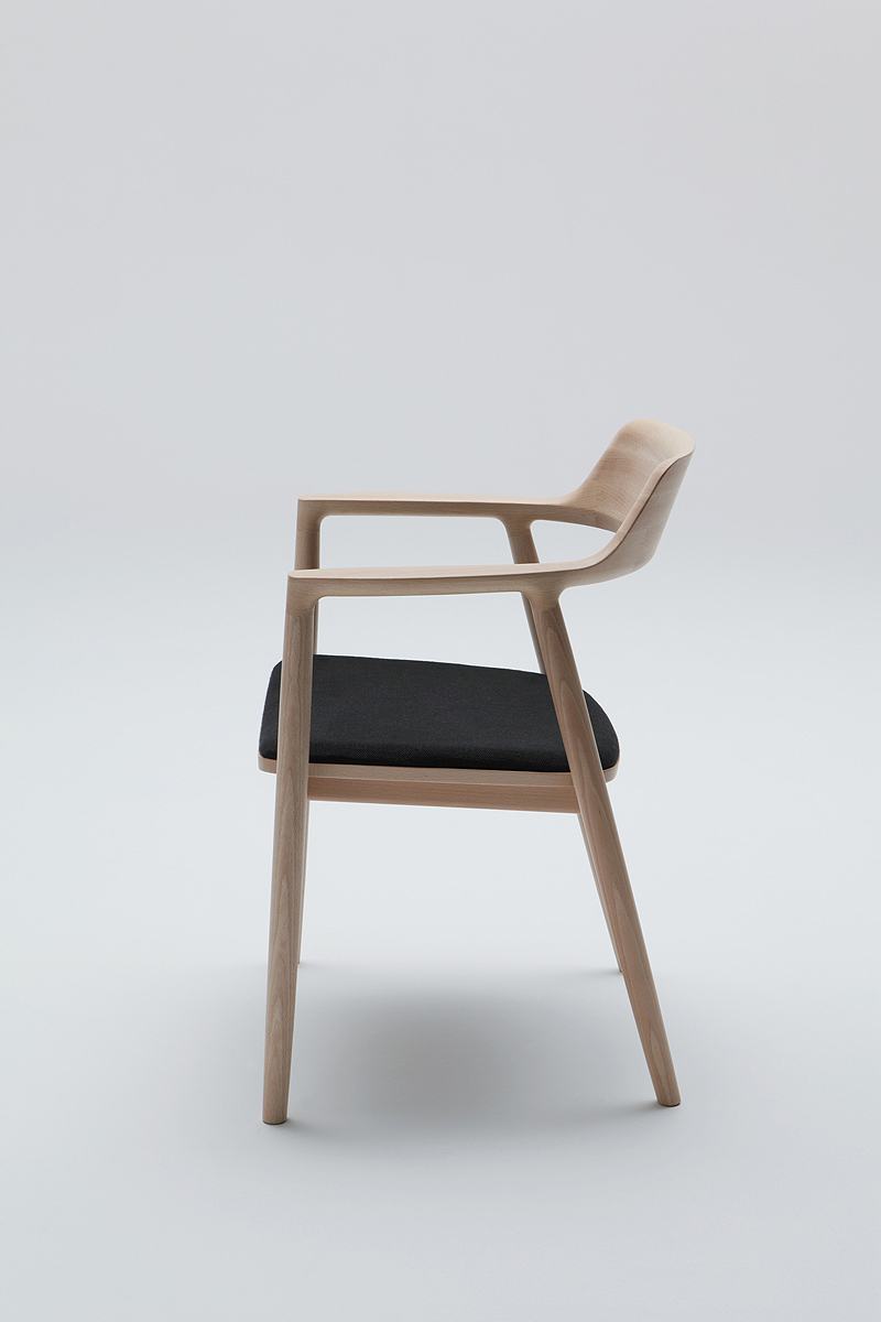 El diseñador japonés ha transmitido a esta colección su capacidad de simplificación, creando una silla y una mesa que desprenden una sensación de tranquilidad y armonía, mientras que la visión de la parte posterior de la silla resulta especialmente agradable. Ésta se define por las formas curvas de su respaldo y de su asiento, lo que permite que el cuerpo humano se acomode perfectamente.