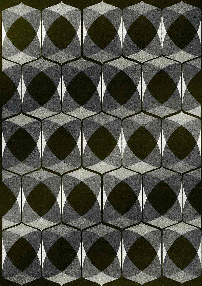 Caracolas: La repetición de múltiples dibujos caleidoscópicos a modo de caracolas son los protagonistas de esta alfombra.