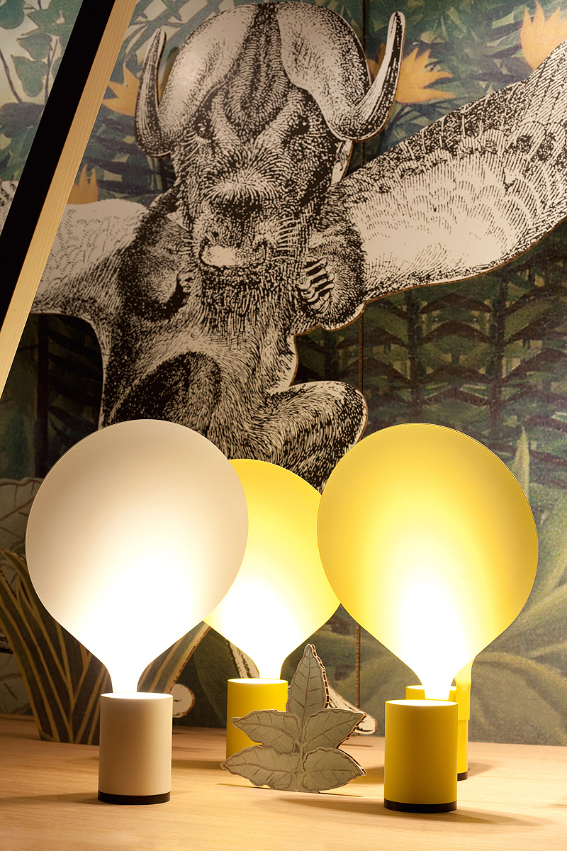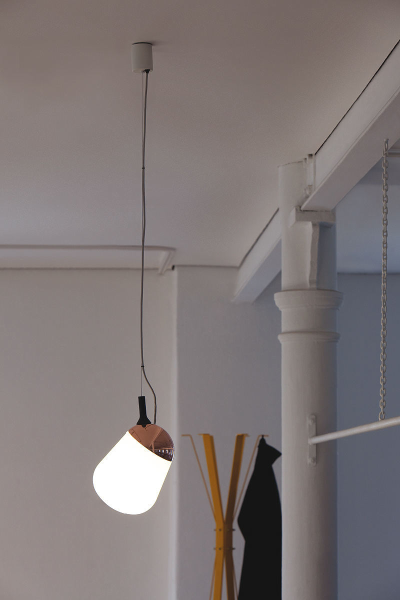 Una cabeza de hipopótamo convertida en una alegre luminaria, formada por una pantalla de cristal y un cáliz metálico reflectante, que se sustenta sobre un eje magnético. Hippo resulta fácil de ajustar y ofrece una luz difusa y acogedora, de la que se puede disfrutar en sus diferentes versiones de techo, suspensión, pared y mesa que utilizan bombillas de bajo consumo. El dúo franco-coreano A + A Coreen (Aki y Arnaud Coreen) la ha diseñado en color blanco y cobre.