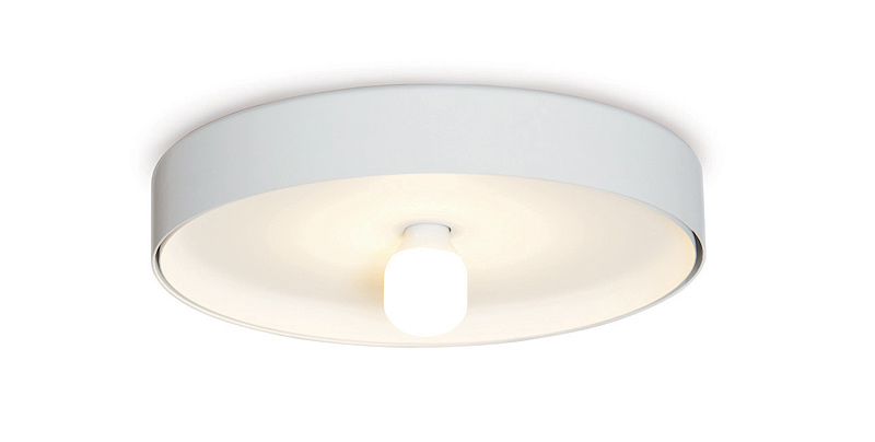 Una lámpara diseñada por Bevk Perović Architecs para adaptarse a pasillos, baños, vestíbulos que, gracias a su forma agradable y universal, es en sí misma un gran reflector en cuyo centro se encuentra al descubierto la fuente de luz. Se puede utilizar individualmente o en grupos ordenados o aleatorios. Está fabricada en metal y acabada en color blanco.