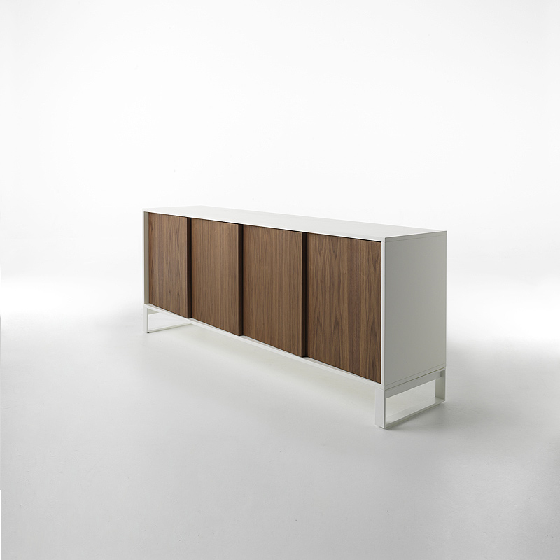 Oblique es el nuevo contenedor diseñado por Salvatore Indriolo que se distingue por sus puertas apoyadas una sobre otra para crear un detalle sencillo y llamativo a la vez. La pertura mediante el sistema «push-pull» hace que el aparador resulte aún más minimal al eliminar cualquier tipo de tirador. Existen tres acabados para las puertas: blanco mate, negro mate y nogal, mientras que las estructuras están lacadas en blanco o negro. Como apoyo dispone de pies de 2 cm o bases de 16 y 32 cm de altura.