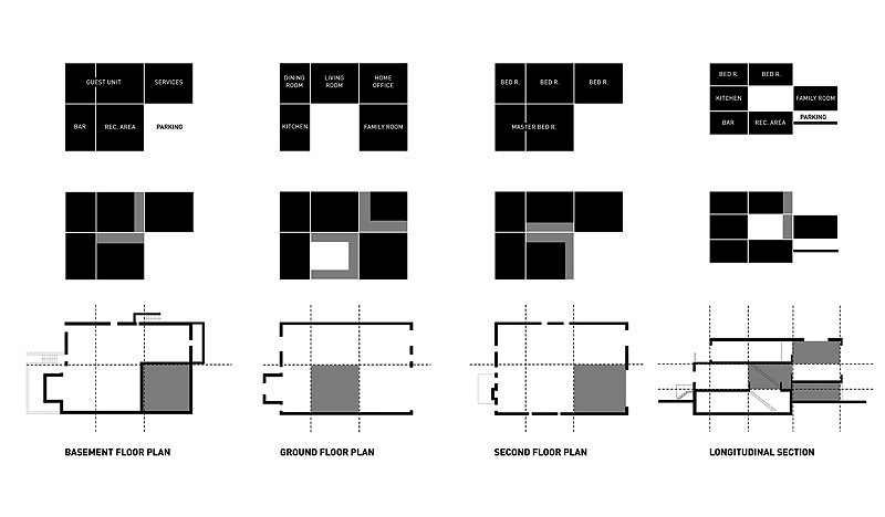 De la misma manera que en un cubo de Rubik, cinco de los seis módulos cambian en cada uno de los niveles para dar forma a las distintas estancias, mientras que uno es «retirado» para permitir la comunicación visual y la entrada de luz natural.