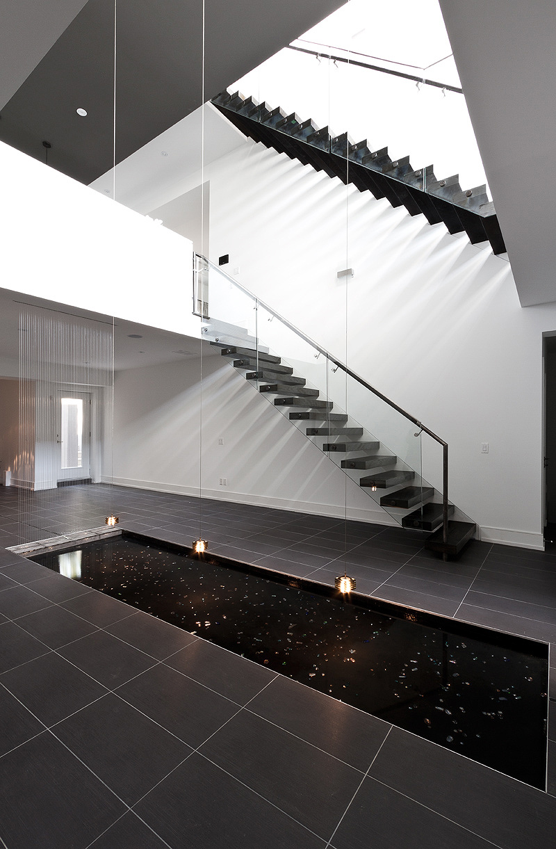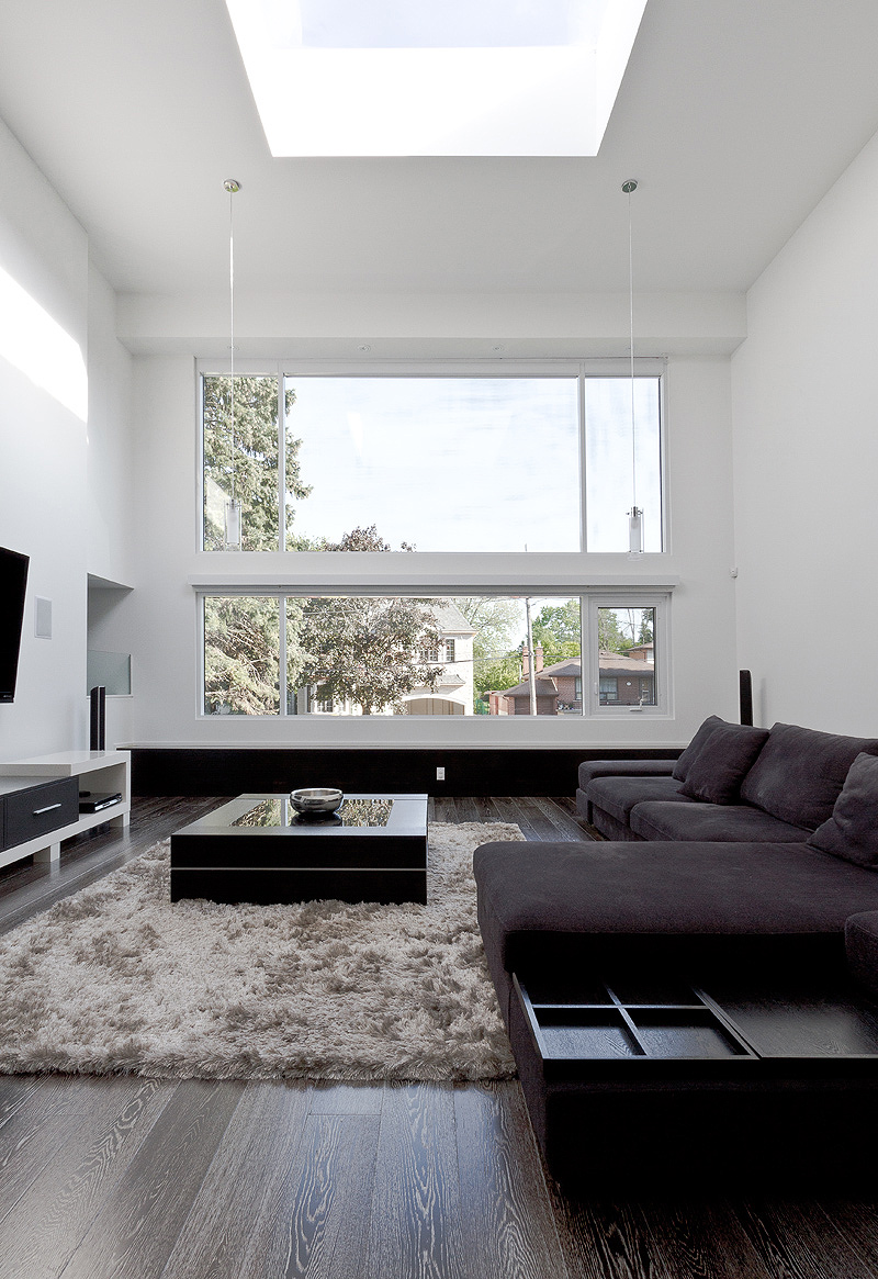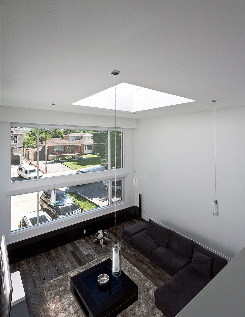 «Cinco de cada seis» es la fórmula aplicada por el arquitecto Reza Aliabadi (Atelier rzlbd) al proyecto de esta luminosa y transparente vivienda, que contrasta con las casas que se acostumbran a encontrar en Toronto, una ciudad donde las severas condiciones climáticas no favorecen precisamente que las edificaciones disfruten de amplias aberturas al exterior. Sin embargo, los habitantes de esta residencia unifamiliar podrán experimentar la luz del día en su máximo nivel tanto en verano como en invierno. «5/6 House es un intento de salvar las bombillas!», bromea el propio arquitecto en la memoria del proyecto.