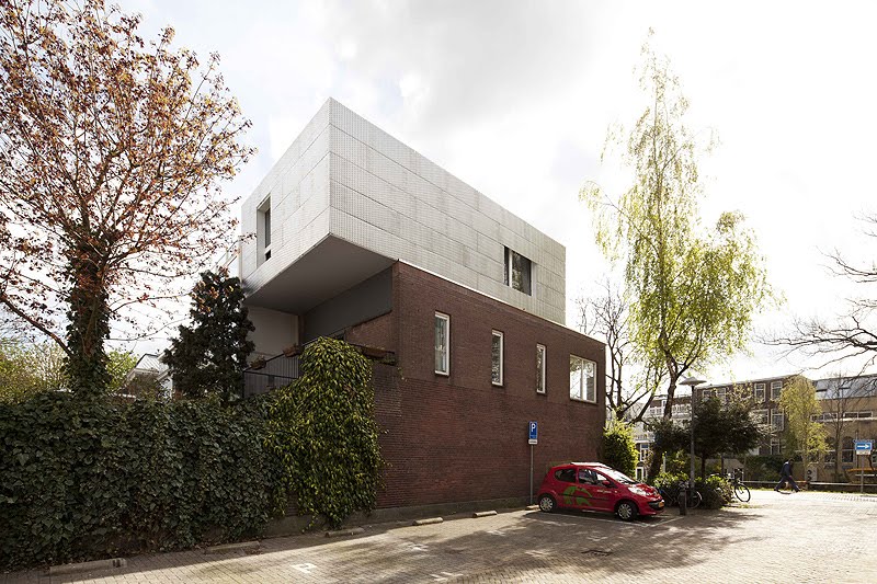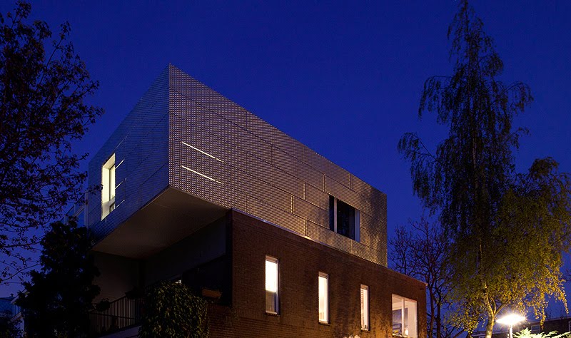 La vivienda está formada por diferentes cubos cuyas fachadas se han rematado con diferentes materiales como el ladrillo o las planchas de metal perforado, que convierten el exterior de la casa en una combinación de diferentes personalidades.