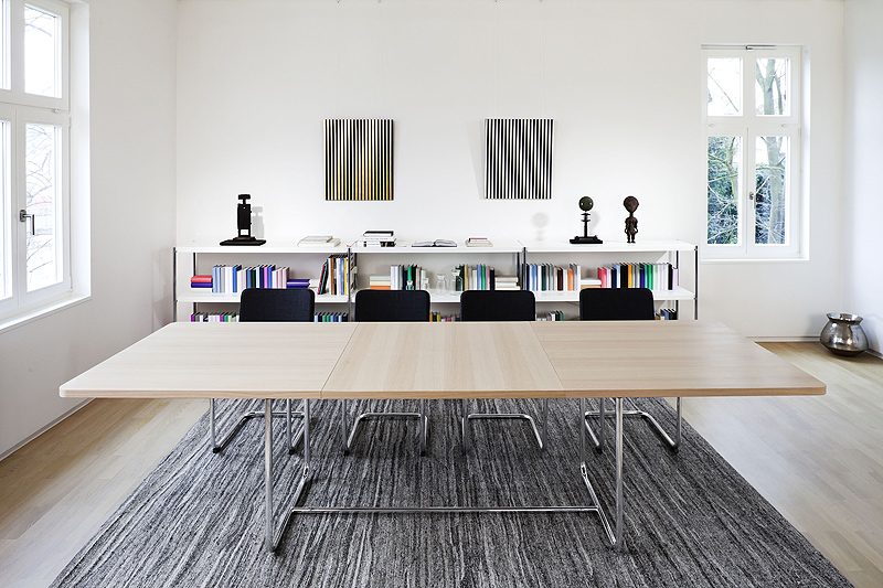 La nueva familia de mesas integra un mecanismo mejorado de plegamiento para los tableros insertados que se maneja fácilmente. Una vez abierto el sobre (ver fotografías), los tableros ocultos pueden desplegarse con una sola mano. Extendida, la S1072 alcanza unas medidas de 290 x 100 cm, por lo que ofrece una mayor superficie útil que su predecesora.