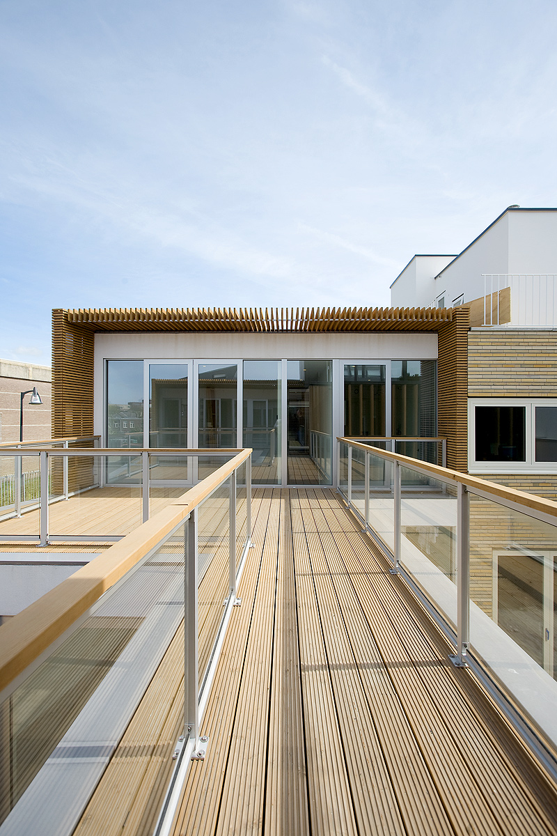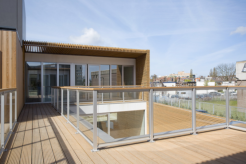 La edificación, que ofrece una reinterpretación de la vivienda clásica holandesa, se levanta en una parcela casi triangular de 30 m de largo, en cuyo extremo más estrecho se ha dispuesto la zona de aparcamiento.