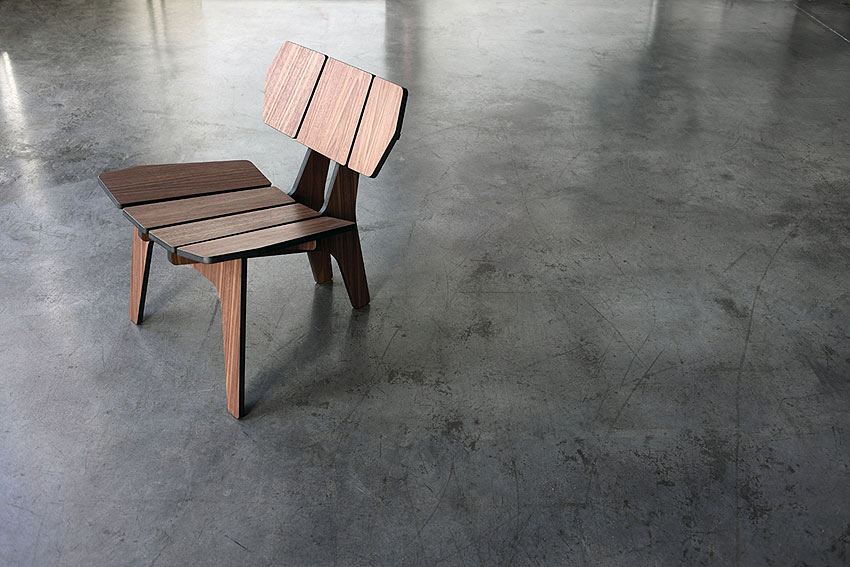 Elegante y confortable silla diseñada por piezas que pueden ensamblarse como un rompecabezas, encajando a la perfección. Aunque parece una construcción sencilla de elementos rectos, éstos están dispuestos y cortados para formar figuras redondeadas. En su diseño, incorpora el laminado Formica® Compact en las uniones de las piezas de una manera inédita. Se trata de un sistema de unión que aprovecha la dureza y belleza estética del laminado para crear un novedoso nodo de ensamblaje. Robusta, liviana, fácil de montar y con una estabilidad excelente. Su práctico diseño permite el montaje como un simple puzzle infantil.