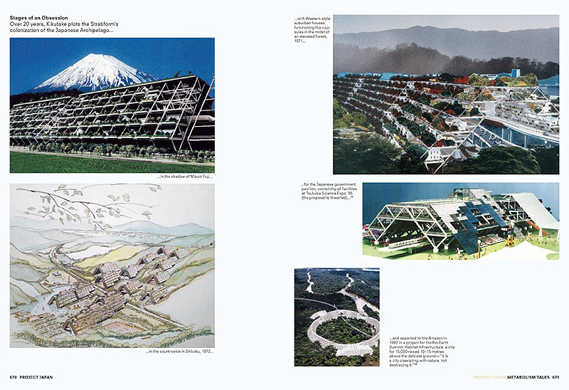 Este trabajo se complementa con cientos de imágenes nunca vistas -planes maestros desde Manchuria a Tokio, instantáneas íntimas de los metabolistas trabajando y divirtiéndose, modelos arquitectónicos, extractos de revistas y asombrosas visiones urbanas de ciencia ficción- que narran la historia del país nipón en el siglo XX a través de su arquitectura, desde la tabula rasa de una colonizada Manchuria en los años 1930 hasta un Japón devastado tras la guerra, la fundación del metabolismo en la Conferencia Mundial del Diseño de 1960 en Tokio, el ascenso de Kisho Kurokawa como el primer arquitecto célebre, la apoteosis del metabolismo en la Expo ’70 de Osaka y su expansión por Oriente Medio y África en los años 1970.
