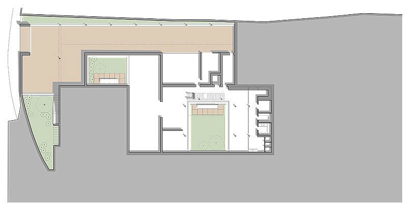 A la hora de distribuir las diferentes estancias de la casa, en el volumen inferior se ubicaron las áreas técnicas, las zonas menos utilizadas y las de apoyo. Mientras, en el nivel superior, las áreas sociales se articularon en torno a un patio principal y las habitaciones en torno a otro patio de carácter privado.