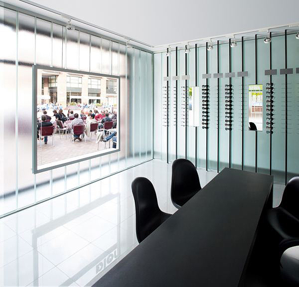 A pesar de contar con un presupuesto muy ajustado (25.000 €), tanto la idea del cliente como la de los arquitectos buscaba dar a esta óptica una imagen atractiva, que la diferenciase de los locales de alrededor.