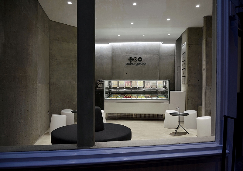 Lejos de decantarse por los colores pastel o estridentes a los que nos tienen acostumbrados la gran mayoría de este tipo de establecimientos, el estudio Vonsung optó por todo lo contrario: una heladería sobria, contenida y minimalista, en la que el color se concentra en los helados que venden. El estudio con sede en Londres y dirigido por John Vonsung, también se ha encargado de llevar a cabo toda la imagen corporativa de Gelato Polka, desde el nombre a la señalización.