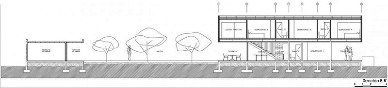 La nueva residencia se diseña desde el quincho como una línea perpendicular a este elemento, con lo que el volumen proyectado resuelve de mejor forma la iluminación natural de la vivienda.
