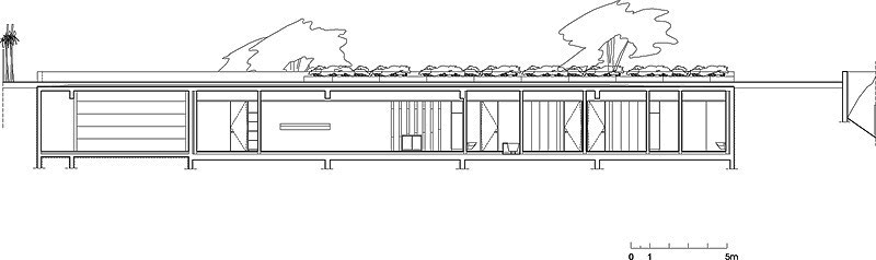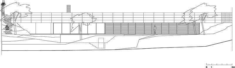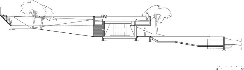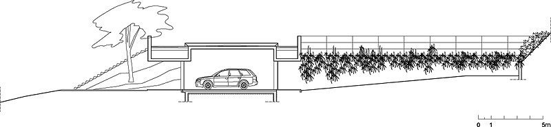 Siguiendo esta directriz, el estudio de arquitectura optó por una planta mono-orientada, que se ha racionalizado y simplificado para inscribirse en la anchura de la parcela. En lugar de amoldar el terreno a la casa, la arquitectura se integró en ella como si se tratara de una obra de arte «land art». El procedimiento resultó eficaz para preservar las vistas, mejorar la sostenibilidad y, finalmente, «para permitir a la naturaleza volver al lugar al que pertenece».