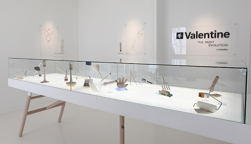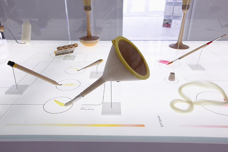 En este espacio, una vitrina central sirve para exponer los imaginativos instrumentos y diferentes tipos de pinceles surgidos de «mutaciones genéticas». Pinceles compás, látigo o de péndulo dan pistas sobre el comportamiento de la pintura a través de sus trazos y a través de la historia.