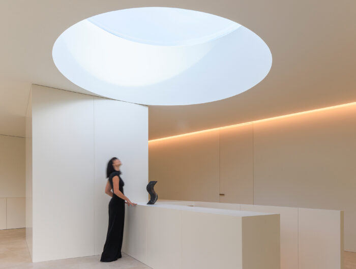 A-cero ha creado un espacio con un marcado carácter escultórico y diferenciador, que pretende transportar el espíritu del estudio de arquitectura a L’Antic Colonial. En esta estancia, donde los volúmenes y las sensaciones son los protagonistas, se muestran las diferentes piezas de la colección Spirit by A-cero (bañera, mueble, lavabo, plato de ducha, mosaico y bases), que fueron presentadas durante la pasada feria Cersaie.
