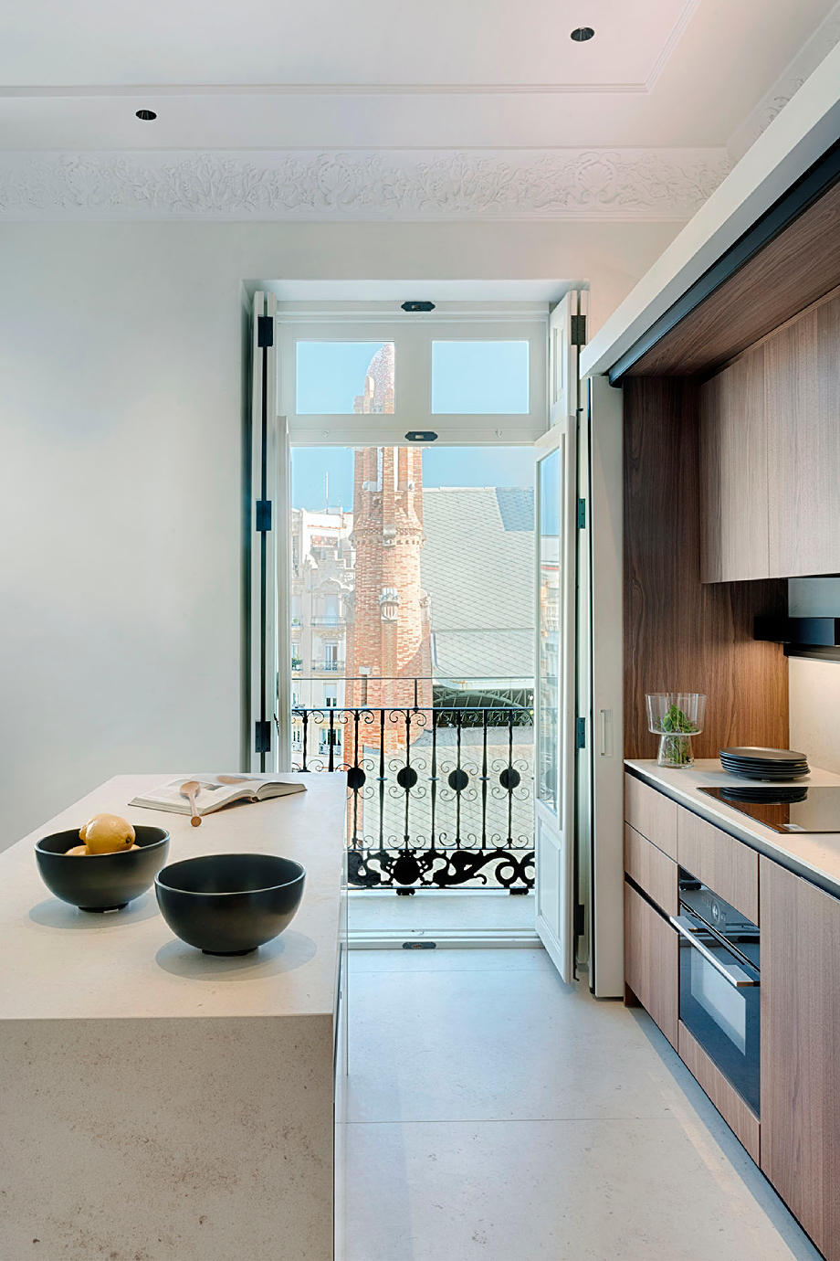 Rehabilitar una vivienda histórica de 1922 sin perder su identidad original fue el desafío asumido por la firma valenciana Vicente Navarro en este proyecto de reforma integral y diseño interior. Ubicada junto al Mercado de Colón en Valencia (España), considerado Bien de Interés Cultural e icono del Modernismo valenciano, la intervención combinó el respeto por la arquitectura modernista y soluciones contemporáneas, creando espacios funcionales, luminosos y elegantes. De este modo, se conservaron elementos originales, como la carpintería exterior de madera y las molduras de escayola, que aportan carácter y autenticidad, combinándolos con firmas italianas como Arclinea, B&B Italia o Flos.