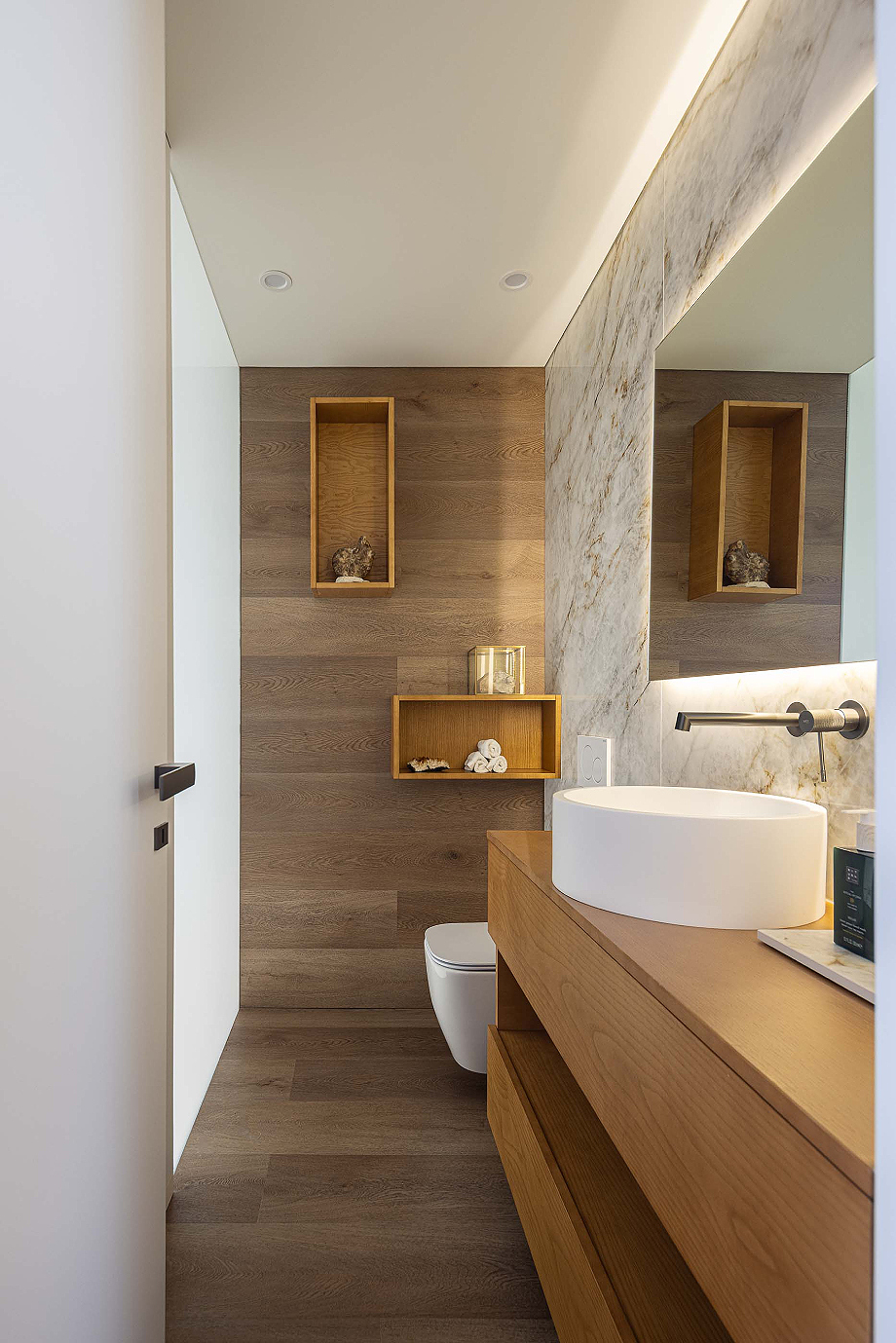 - Vinilo y sanitarios: de Porcelanosa.