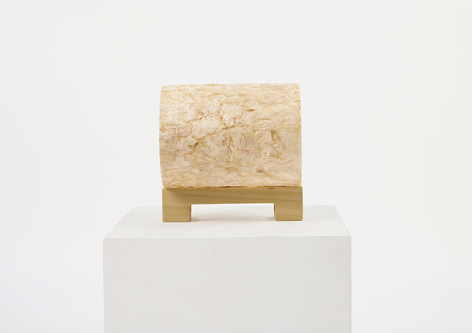 La diseñadora comenzó haciendo pruebas de varios tipos que no le terminaron de convencer. Como había hecho un curso de biomateriales y otro de Domestika, recurrió al uso de elementos naturales para obtener una lámina uniforme. «Ya había observado la característica translúcida del material, por lo que directamente pensé en realizar un objeto lumínico con él», apunta.