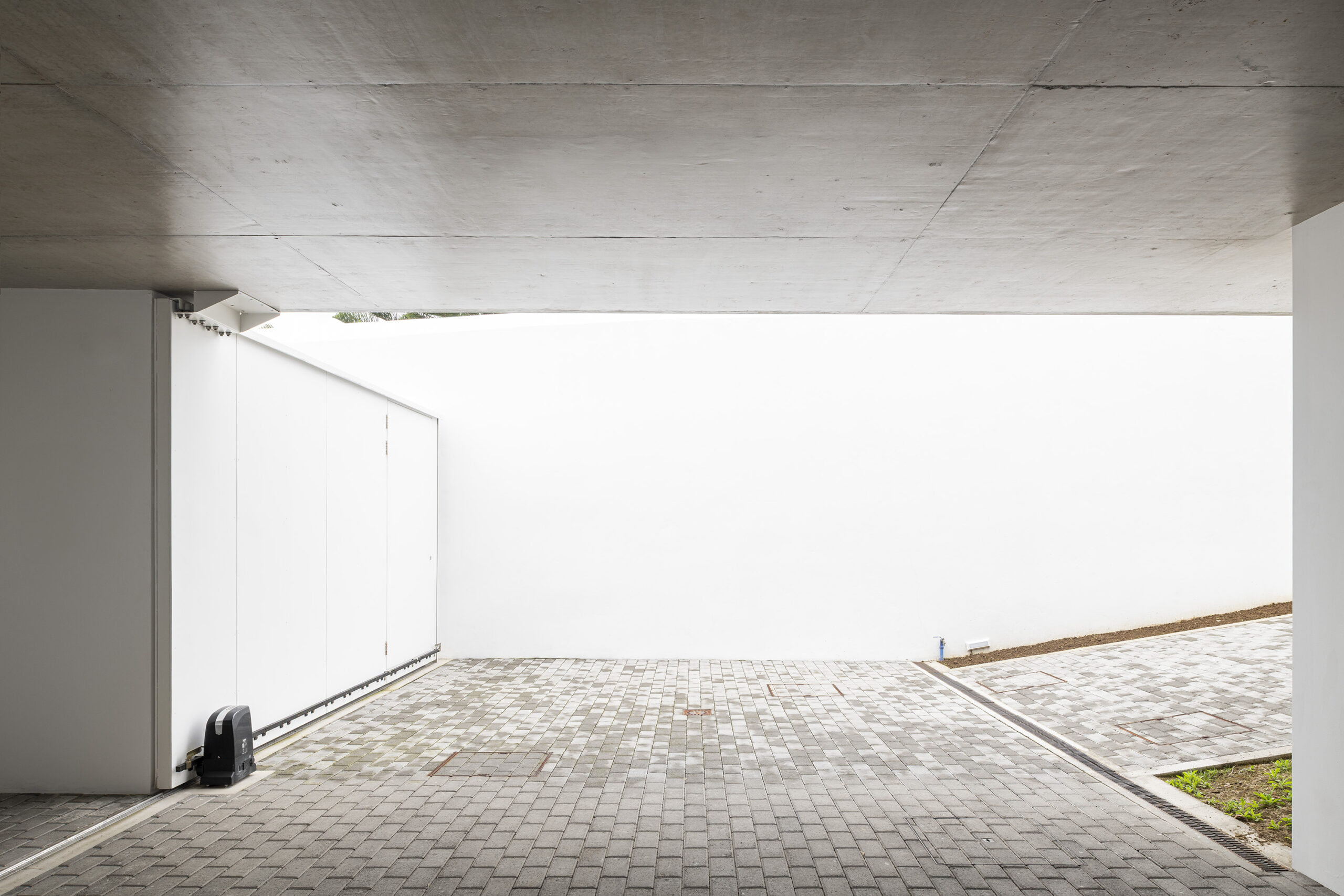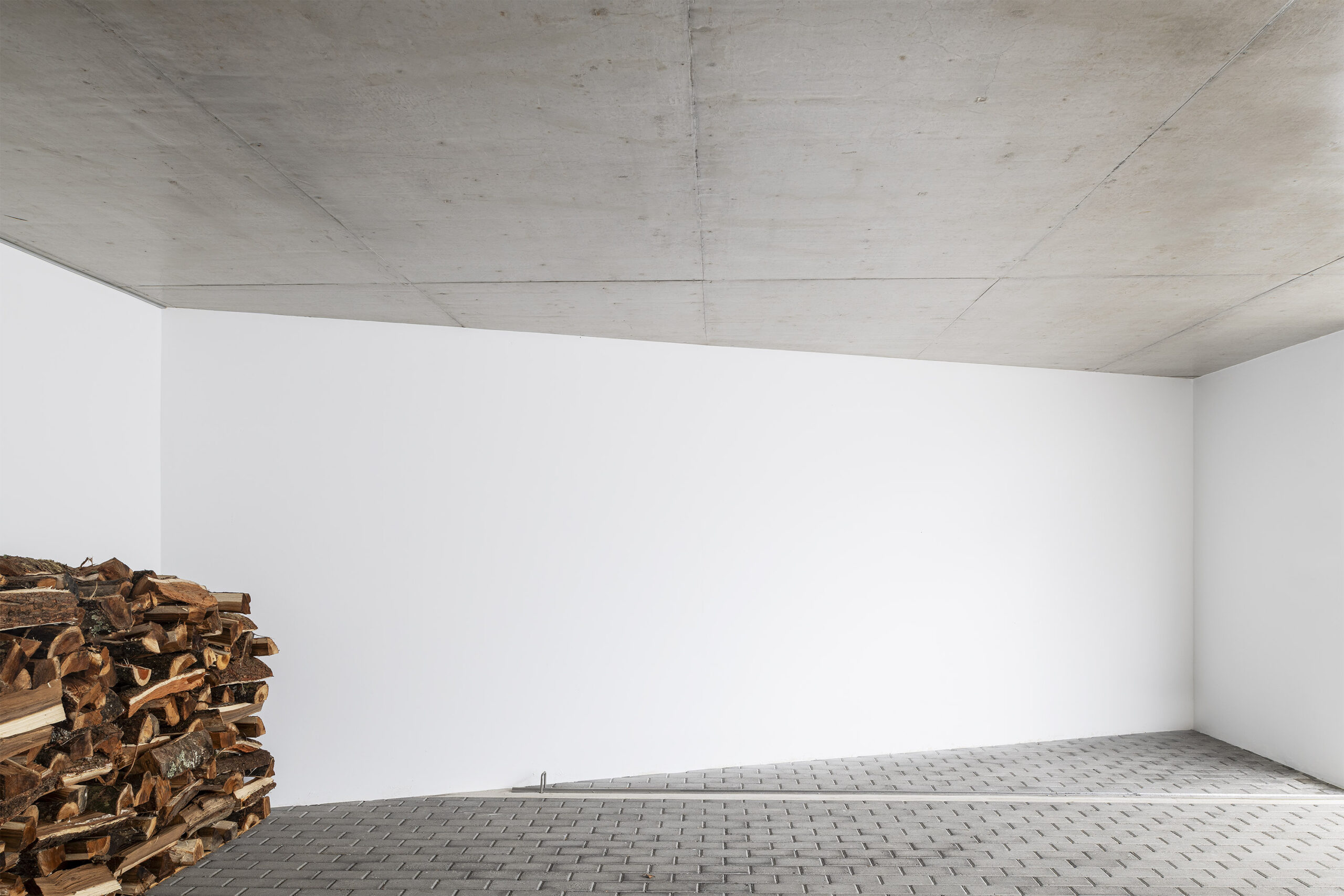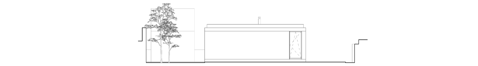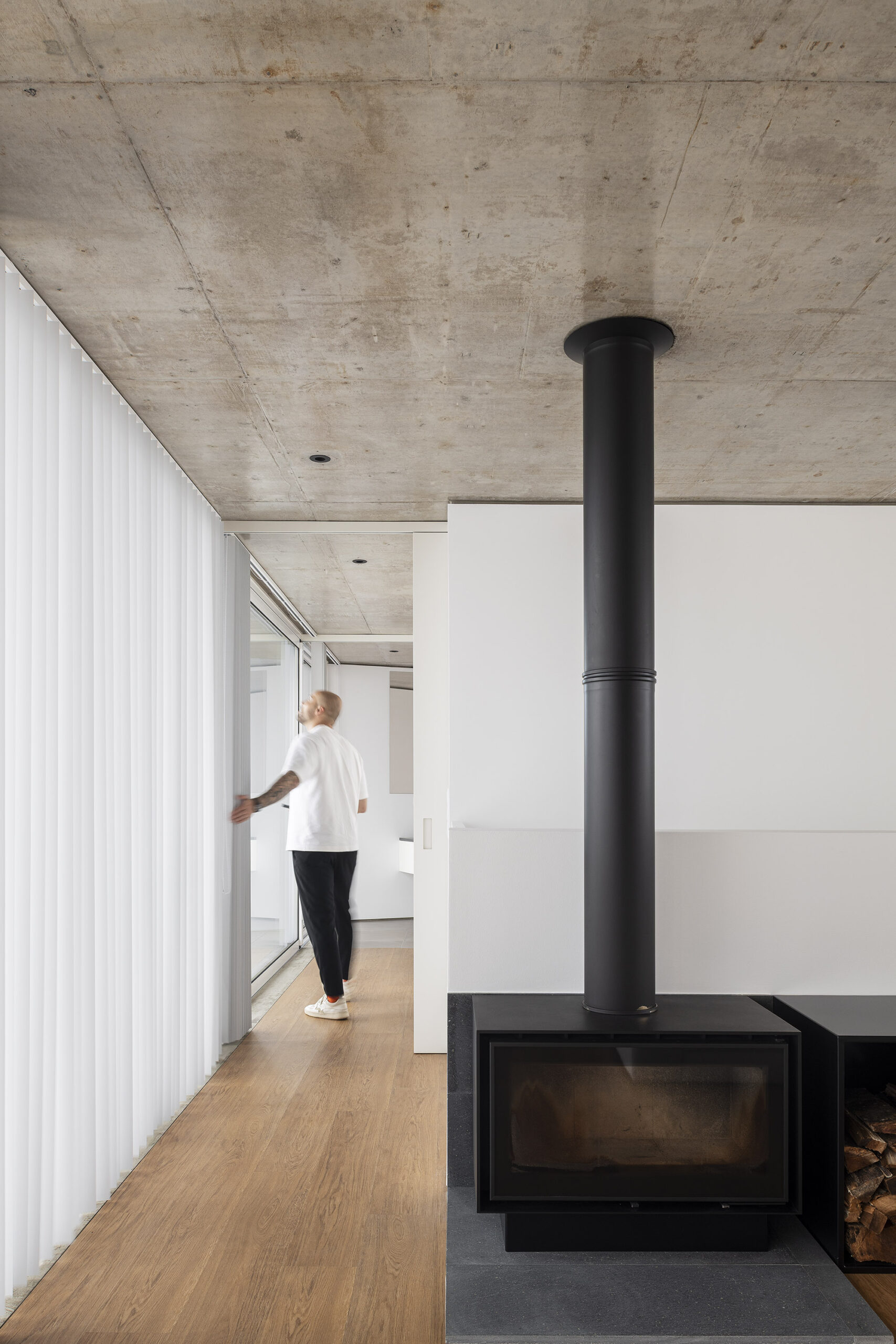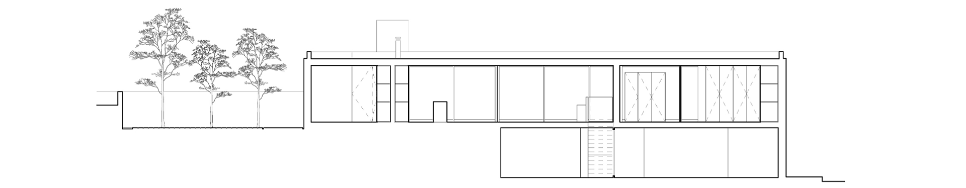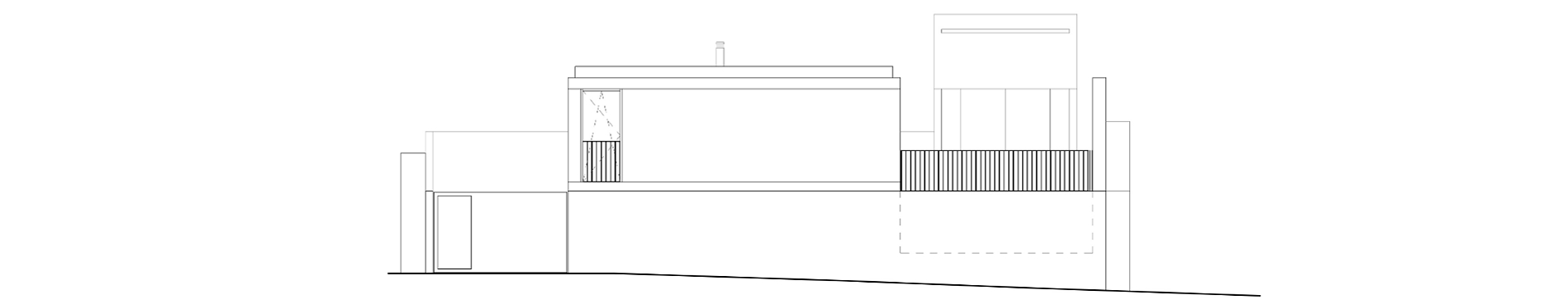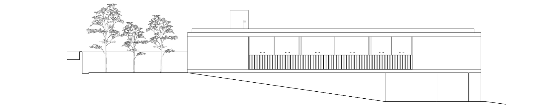 La casa se desarrolla en dos plantas, con una planta baja parcialmente enterrada que facilita una inserción discreta en el entorno. Paralelamente, esta solución arquitectónica reduce el impacto volumétrico del conjunto y refuerza su diálogo con la topografía y la escala del lugar.