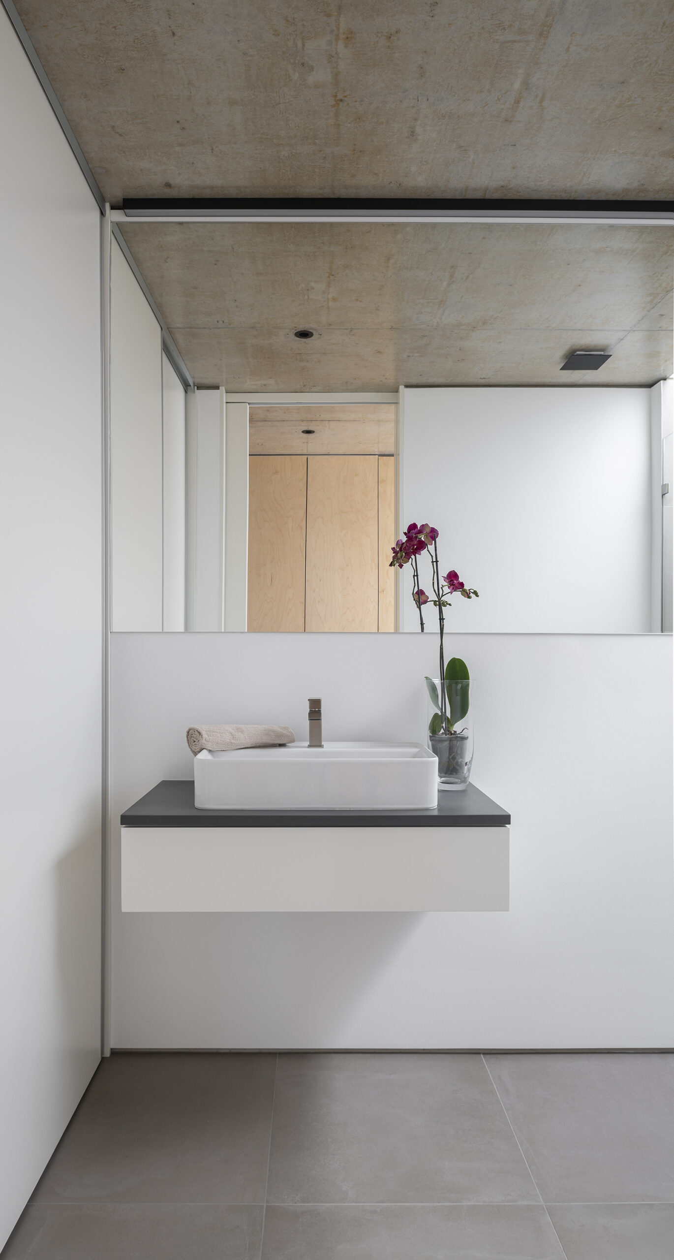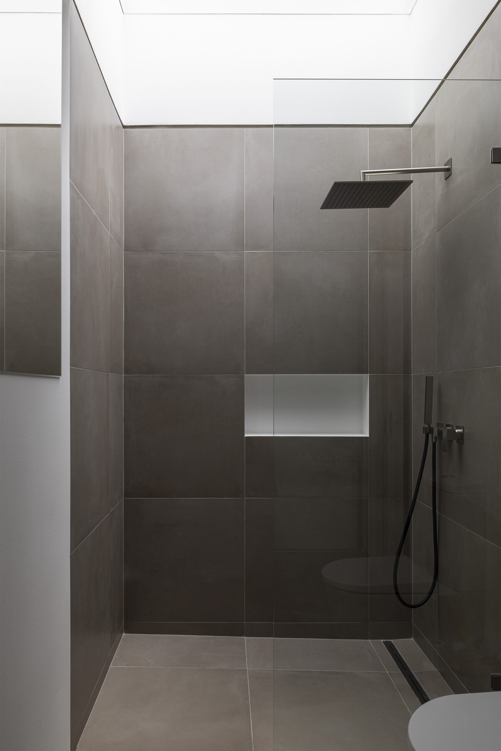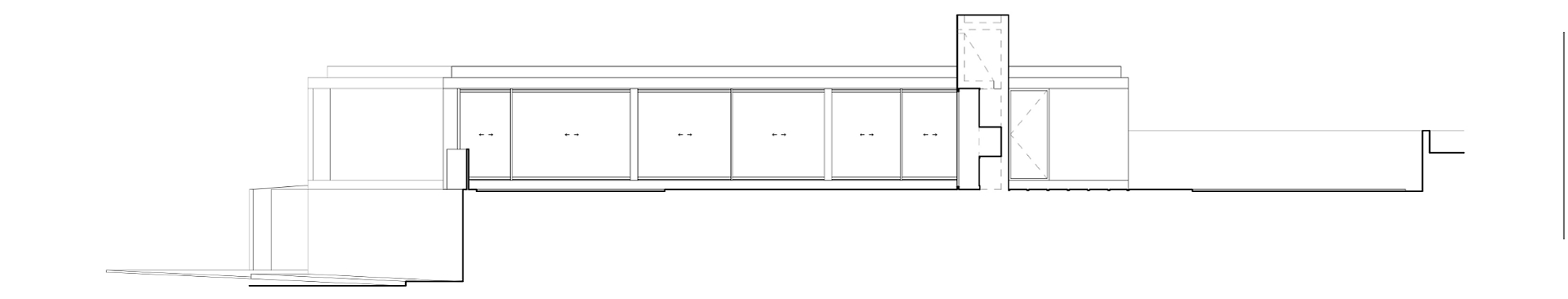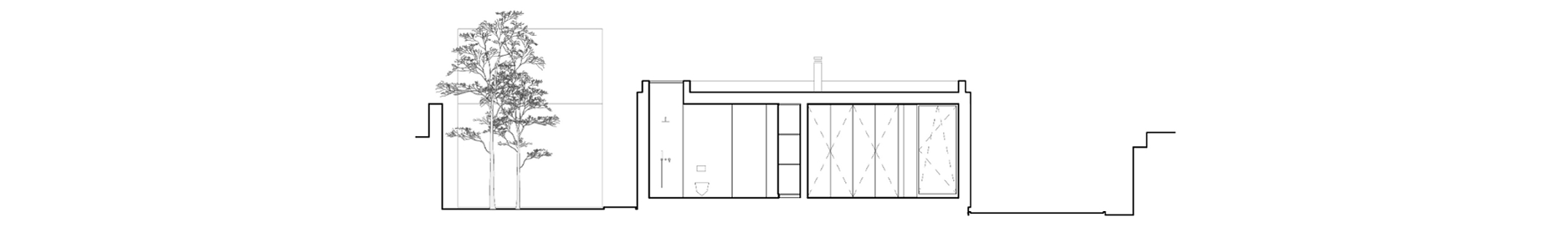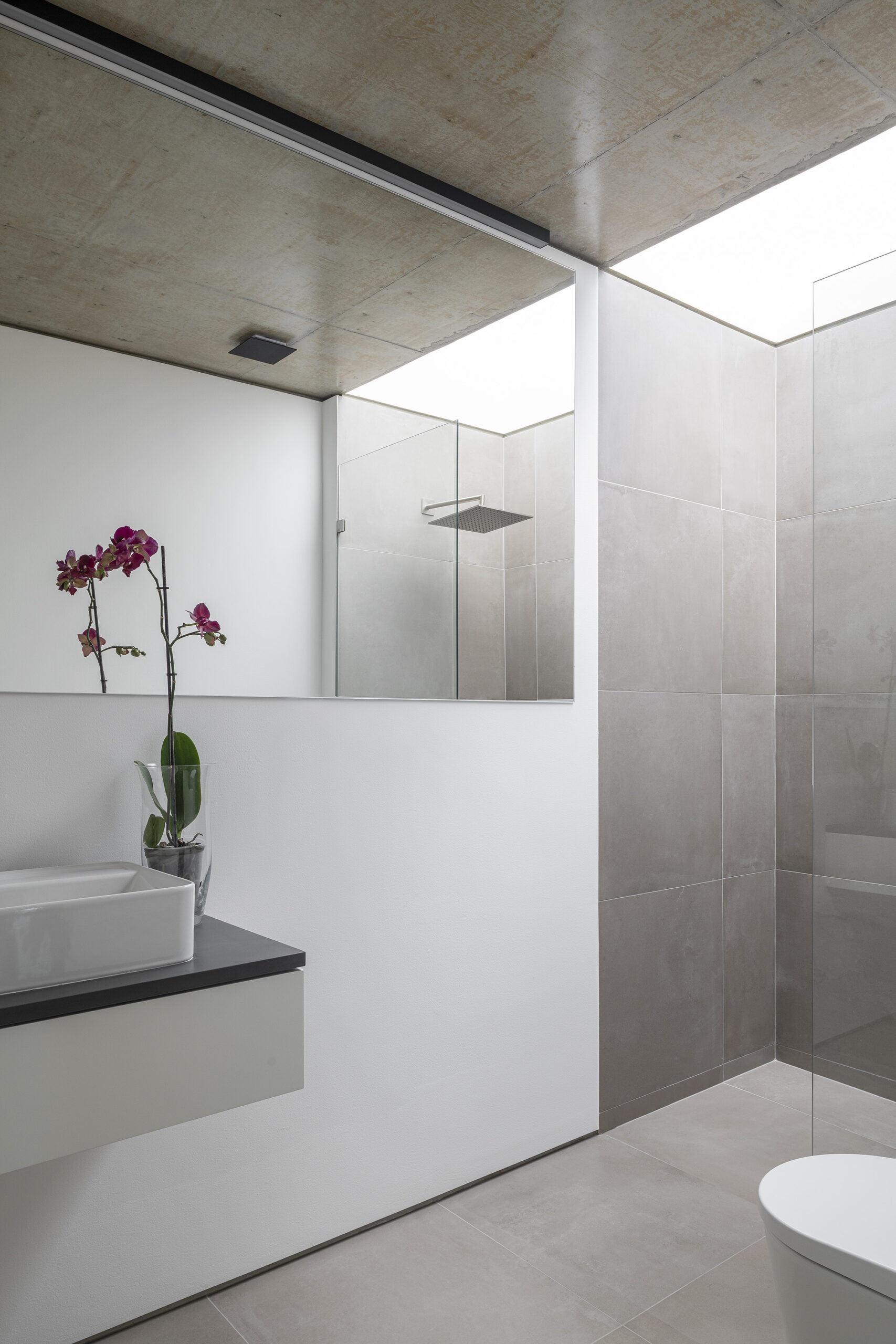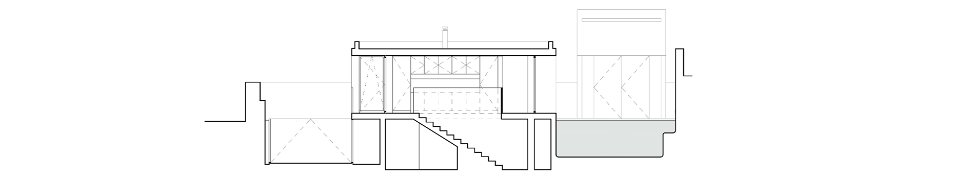 La casa se desarrolla en dos plantas, con una planta baja parcialmente enterrada que facilita una inserción discreta en el entorno. Paralelamente, esta solución arquitectónica reduce el impacto volumétrico del conjunto y refuerza su diálogo con la topografía y la escala del lugar.