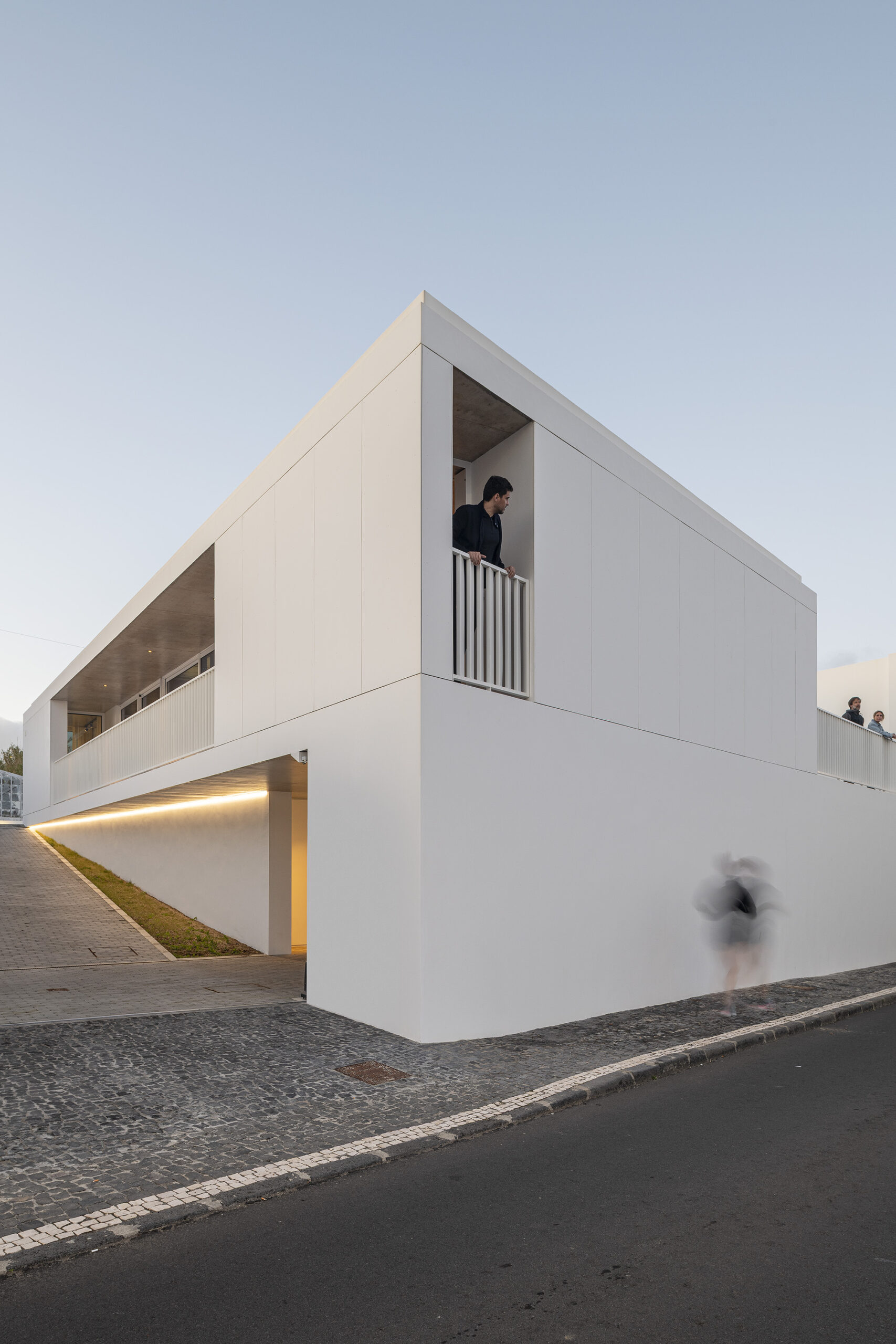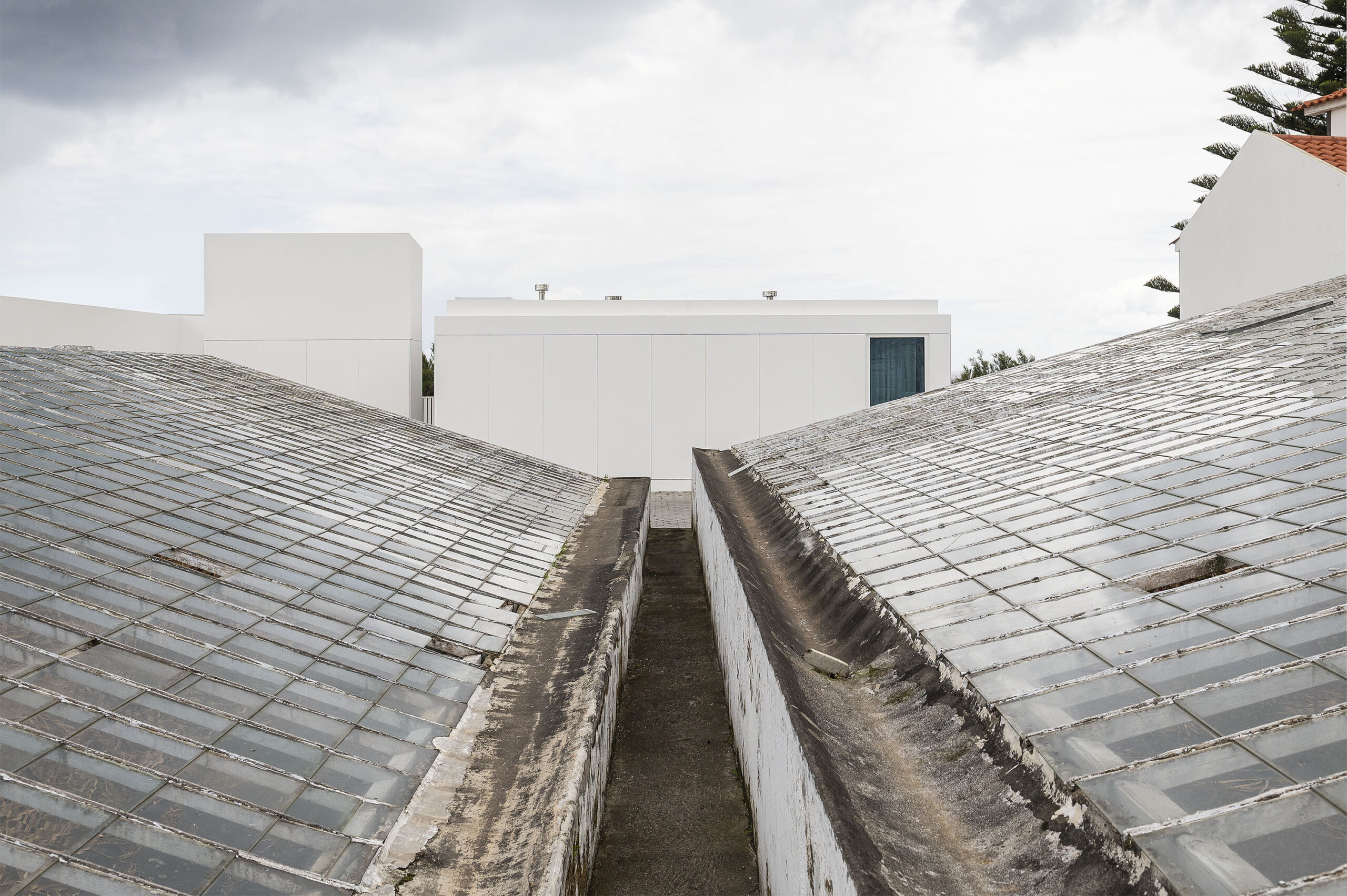 Lejos de buscar el contraste, en cambio, la vivienda busca dialogar con el entorno. Su volumetría blanca y luminosa se integra con la trama urbana de São Roque en las islas Azores y evoca los tonos característicos de los invernaderos de piña que forman parte del paisaje de la isla, estableciendo un sutil vínculo entre memoria y modernidad.