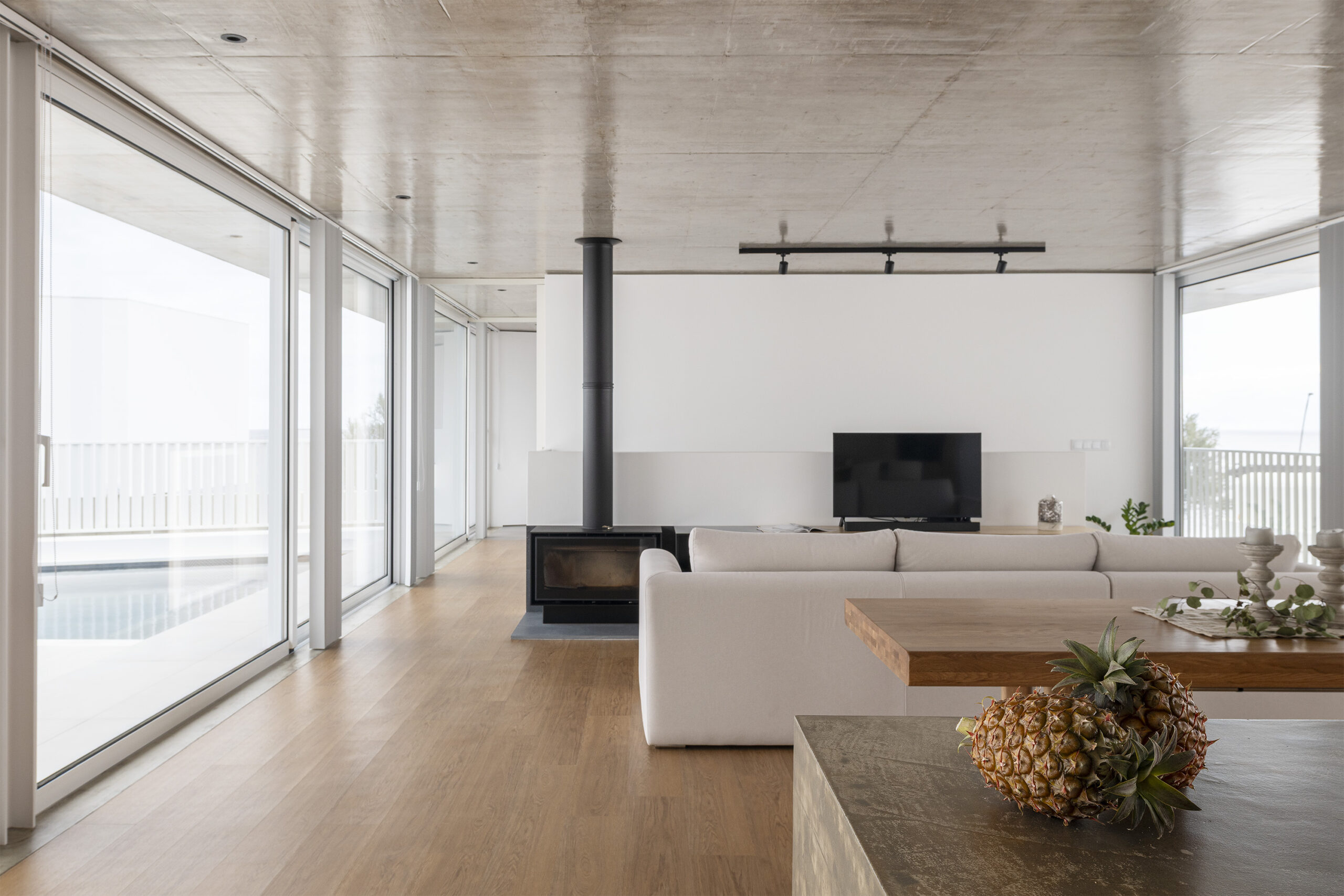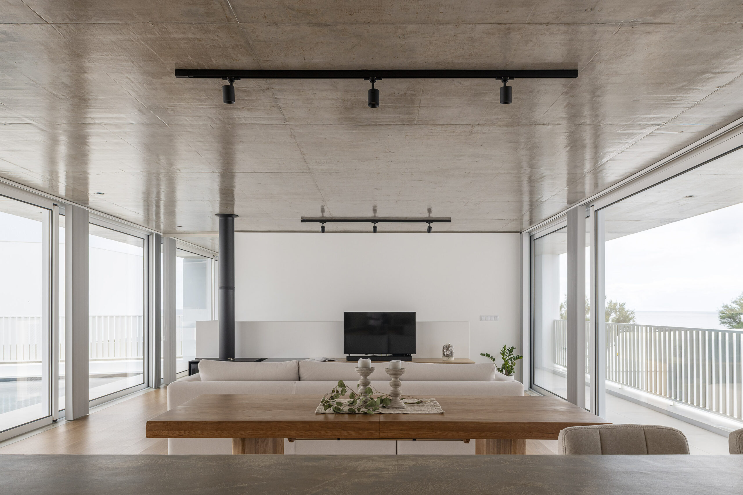 El proyecto de Sal Arquitectos se distingue por una composición de planos suaves y continuos, intercalados con aberturas estratégicas que capturan la luz y enmarcan las vistas. Los volúmenes puros y la claridad estructural del diseño generan un lenguaje contemporáneo y sobrio, profundamente arraigado en el territorio insular.