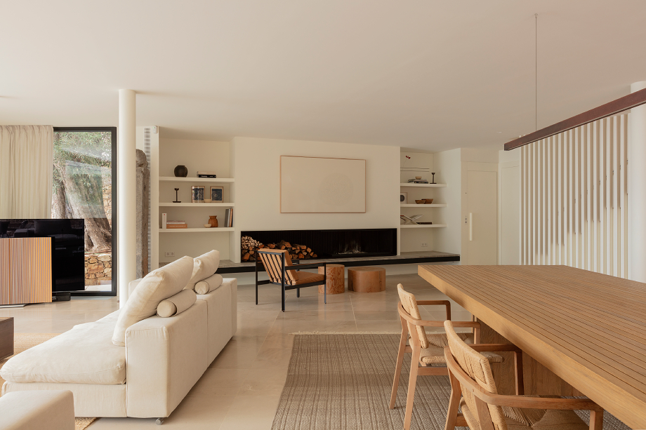 El cálido interiorismo acompaña con coherencia la arquitectura, configurando un hogar vacacional y de desconexión pensado para el confort y el disfrute, que refleja los valores de la cultura mediterránea a través de los materiales y la paleta cromática. Cada espacio ha sido concebido para crear una experiencia de vida placentera, en plena sintonía con la belleza natural de entorno.