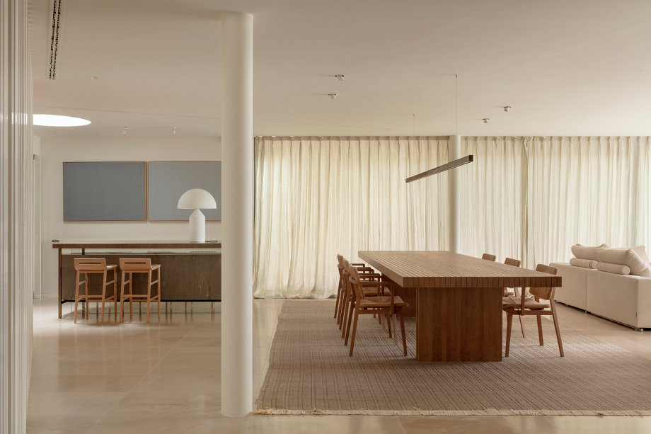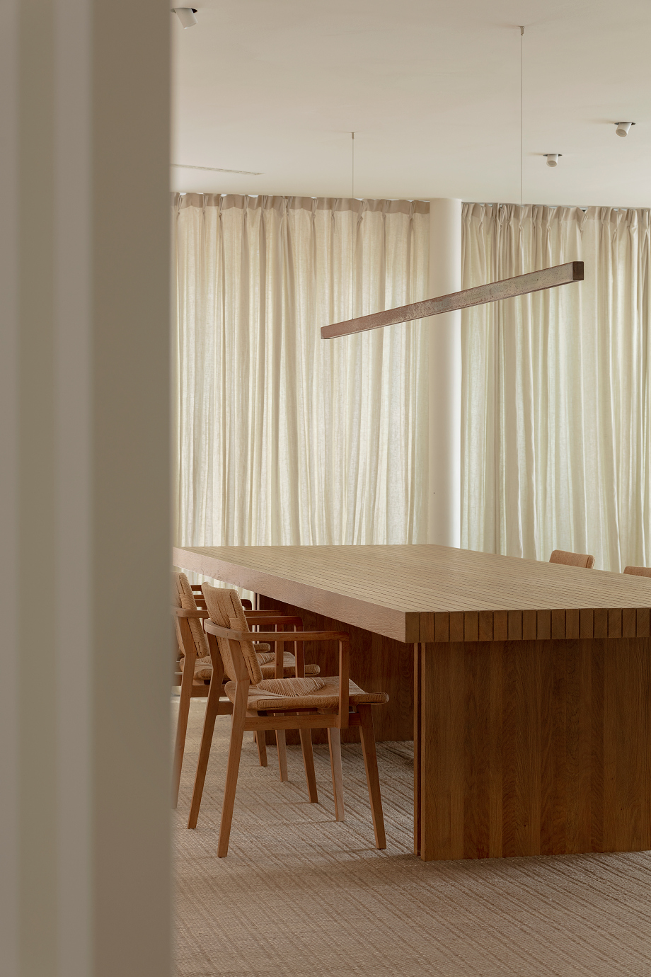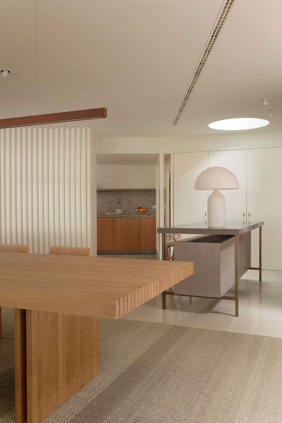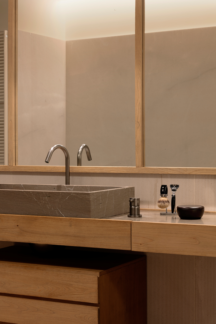 La selección de materiales refleja una sobriedad refinada, potenciada por una ejecución impecable y un cuidado extremo en los detalles. Cada oficio implicado aportó su experiencia, permitiendo a los autores del proyecto encontrar soluciones precisas que equilibran funcionalidad y estética. La simplicidad de los elementos y la armonía de las piezas elegidas generan un ambiente sereno, donde la elegancia emerge de manera natural y sin artificios.