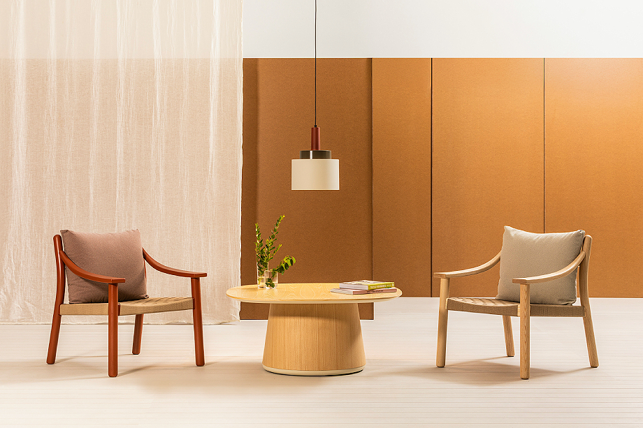 Esta nueva familia de asientos viene a sumarse al resto de colecciones diseñadas hasta el momento por Gabriele Schiavon y Gerard Santmartí para la marca de mobiliario de Tortellà: la silla y el taburete Remo, el pouf con respaldo Room, y la colección de butacas, sillas y taburetes Round.
