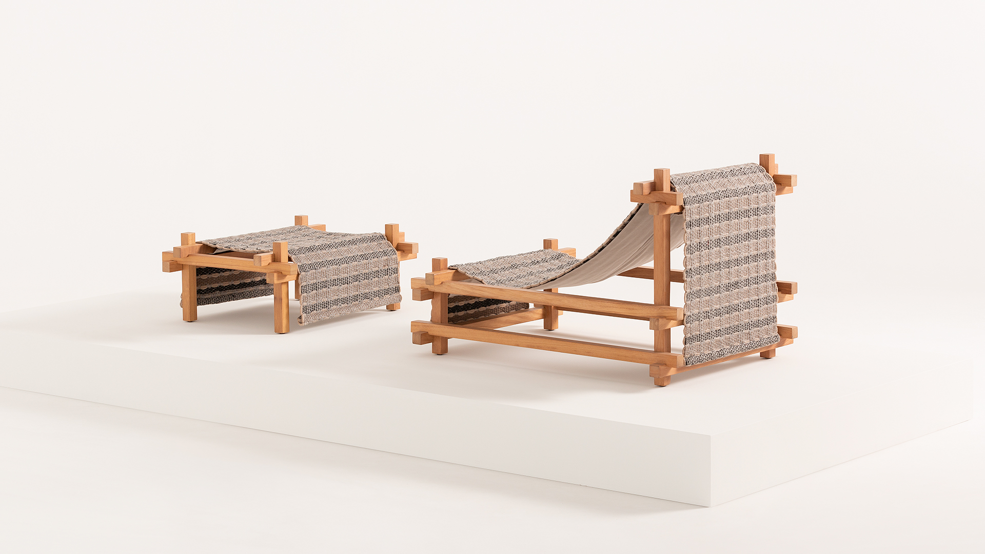 El resultado son piezas como un biombo, una hamaca y un taburete, que puede funcionar también como mesa auxiliar o reposapiés. Las tres comparten un carácter arquitectónico y natural, rasgo distintivo de la visión de Kuma: “Tanto la gran arquitectura como los objetos a menor escala están fundamentalmente concebidos para el entorno humano. En ambos casos, estamos diseñando el entorno que rodea al ser humano, ya se llame arquitectura o mobiliario. Lo que pienso constantemente es cómo conectar a esta pequeña criatura, el ser humano, con la inmensidad de la naturaleza. Es esta conexión lo que me interesa diseñar”. Esta idea se materializa en la colección mediante técnicas tradicionales japonesas como el Okuriari, empleadas para ensamblar la madera y fijar los tejidos, evocando el vínculo ancestral entre cuerpo, fibras naturales y madera.