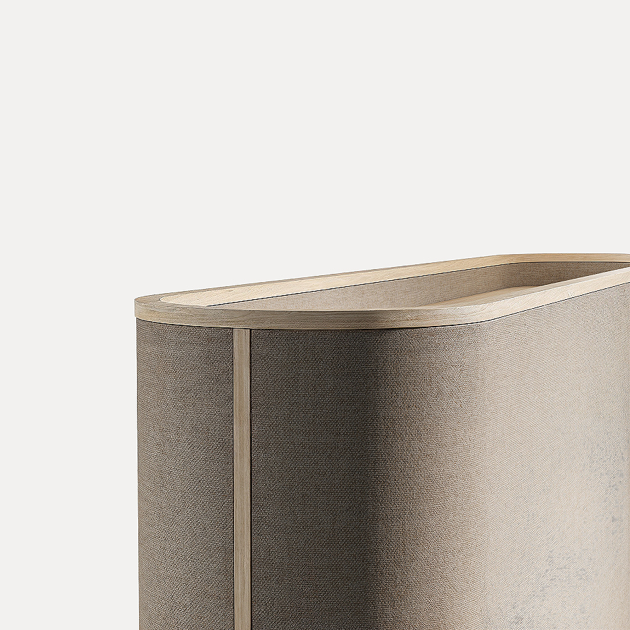 Giro está fabricado con estructura de madera y relleno de lana de roca, con listones decorativos y un estante superior de chapa de madera, mientras que todo su exterior está tapizado en tela, lo que le aporta acabado y suavidad. Además, ofrece una amplia variedad de tejidos de marcas como Davis, Camira, Gabriel, Kvadrat y Nevotex, y cuenta con ruedas giratorias integradas en la base que facilitan su movimiento y reconfiguración, entregándose completamente montado y listo para usar. Sus dimensiones son igualmente versátiles y los acabados de la madera incluyen roble natural, fresno natural, blanco y negro.