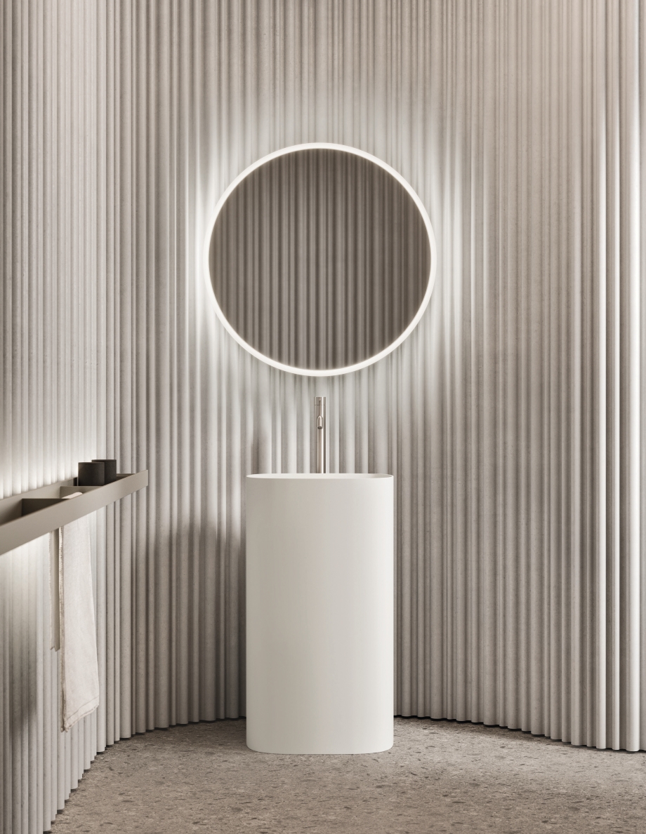 Tube, que está disponible en modelo redondo o rectangular, se integra con facilidad en proyectos residenciales y contract. La pieza puede combinarse con espejos retroiluminados, encimeras y sistemas modulares de Noorth, creando composiciones de baño coherentes y sofisticadas. Gracias a sus cuidadas proporciones, el equilibrio entre líneas suaves y superficies puras, y la diversidad de acabados, Tube conecta estética y funcionalidad, reinterpretando el lavabo como un objeto escultórico que dialoga con su entorno.