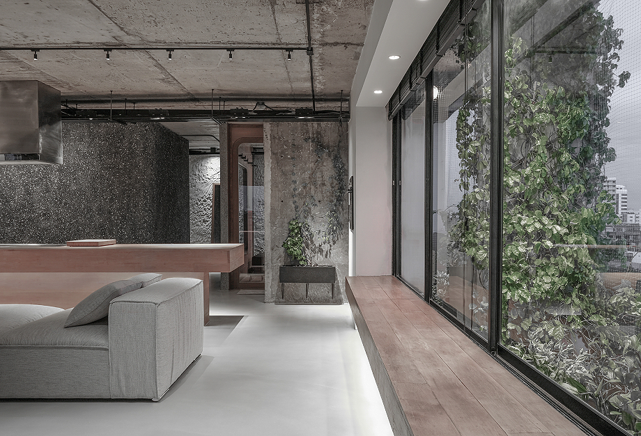 Ubicado en un edificio de gran altura en Bangkok (Tailandia), este apartamento ha sido reinterpretado por Architectkidd como una moderna residencia que equilibra la tradición y el reciclaje con el uso de materiales de construcción de gran solidez. El diseño interior del estudio tailandés ha dotado a la vivienda de un marcado carácter brutalista, derivado de la utilización de materiales como el hormigón y el cemento lavado con arena (sandwash, en inglés), alejándose así de otros acabados más ligeros y habituales en las reformas contemporáneas.