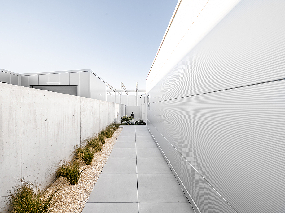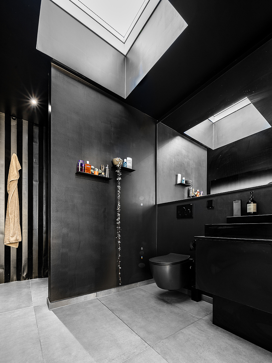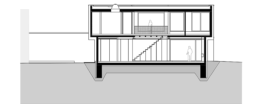 Estas dos técnicas constructivas no se ocultan, sino que se hacen explícitas como parte esencial del discurso arquitectónico. En el exterior, las distintas técnicas constructivas se reconocen a través de una diferenciación cromática en las fachadas, mientras que, en el interior, los contenedores aparecen parcialmente visibles, integrados de forma escenográfica en los espacios. El uso de los contenedores reciclados no solo responde a criterios de sostenibilidad, sino que también establece un vínculo directo con la actividad profesional del cliente, aportando al proyecto un valor personal y emocional que complementa su dimensión creativa.