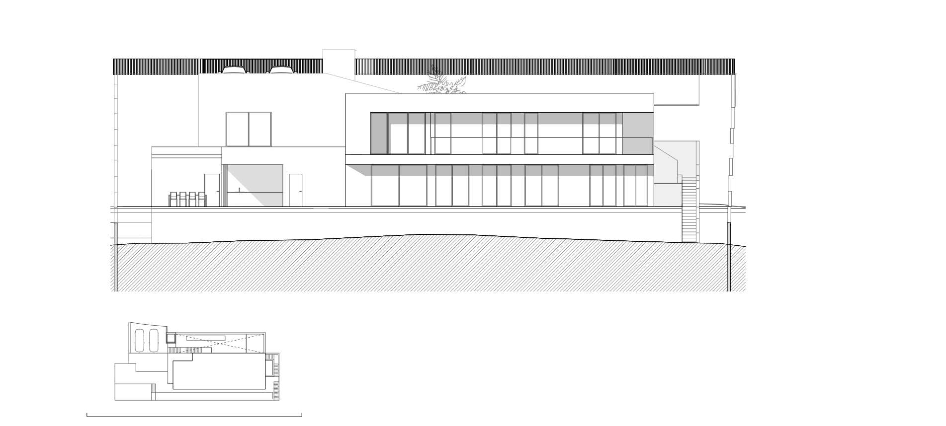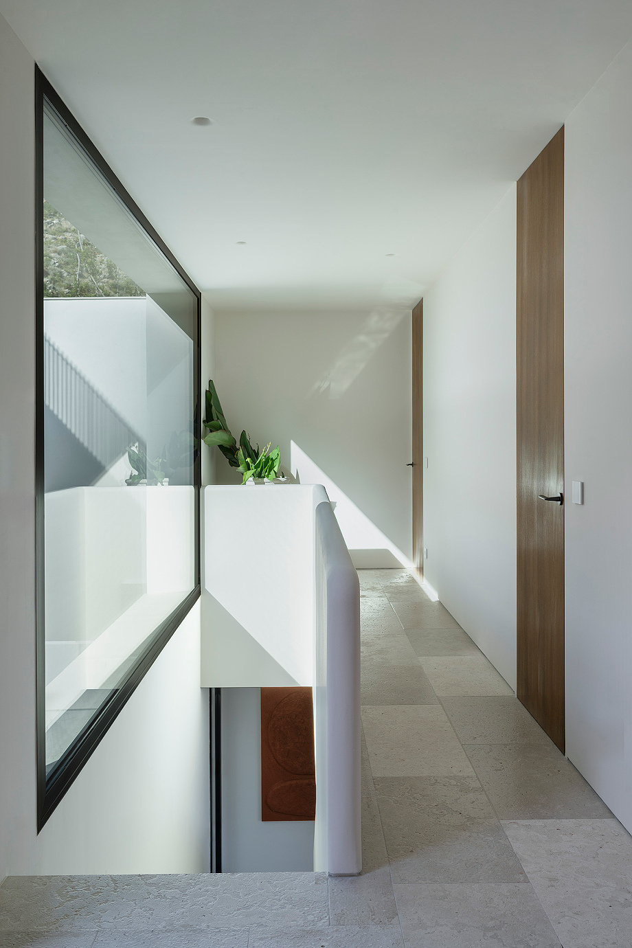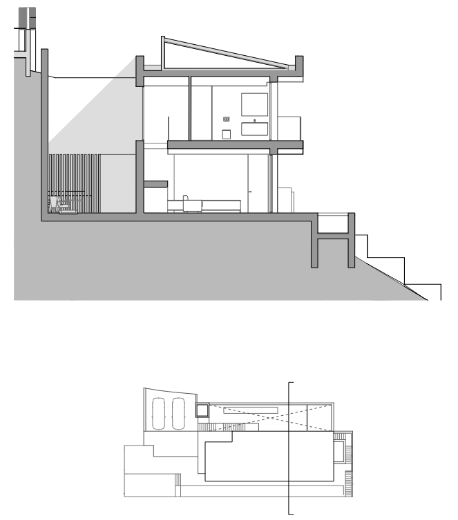 El programa responde a una tipología habitual en viviendas unifamiliares de este nivel. La planta inferior alberga la zona de día y un dormitorio en suite, mientras que la planta superior se destina a tres dormitorios, todos ellos con baño propio. A este esquema se suman algunas particularidades que enriquecen la experiencia espacial, como un apartamento contiguo para invitados.