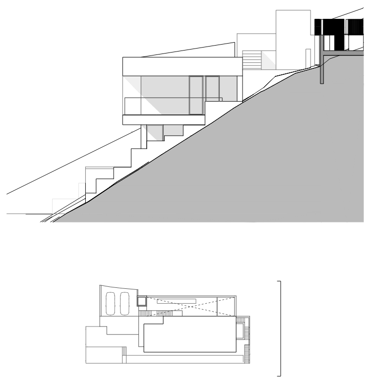 El volumen se apoya sobre el terreno de forma respetuosa, articulándose mediante una serie de plataformas que permiten adaptarse a la ladera. Esta estrategia genera una implantación precisa que reduce el impacto visual y favorece el diálogo entre arquitectura y naturaleza. Desde las distintas terrazas, las montañas, la flora local y el mar convergen en un mismo horizonte, con el Montgó como telón de fondo permanente.