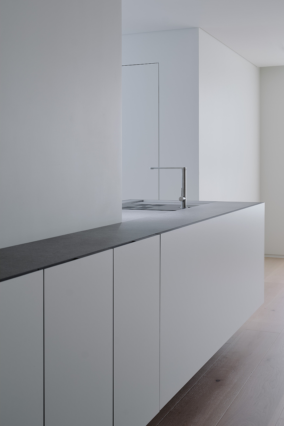 Por otra parte y en consonancia con la filosofía de la firma, la vivienda no se considera un proyecto terminado, sino una estructura en evolución, moldeada por el paso del tiempo y las personas que la habitan. Los ocupantes y sus objetos se convierten en la capa final de la composición. El espacio permanece abierto, capaz de llenarse, pero completo incluso cuando se deja intacto. Esta serena apertura define la perdurabilidad del proyecto.