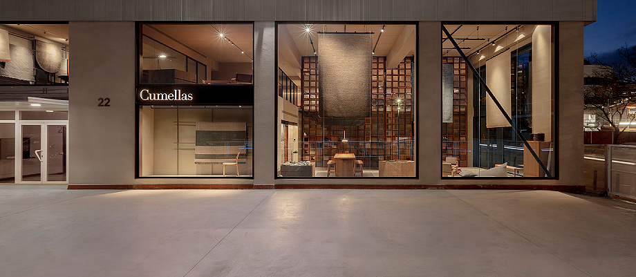 El nuevo espacio, con una superficie de 450 m², está concebido como un lugar de encuentro para interioristas, arquitectos y diseñadores, donde es posible ver y tocar materiales, descubrir colecciones y desarrollar soluciones a medida junto al equipo de Cumellas. El proyecto partió de la transformación de una nave industrial, originalmente organizada en dos plantas de oficinas independientes, que se reconfiguró como un espacio abierto en esquina, a doble altura, funcionando como un gran showroom-escaparate. Para ello, se conectaron ambas plantas mediante una escalera interior y se llevaron a cabo diversas intervenciones, cuya ejecución corrió a cargo de Studio Central Project.