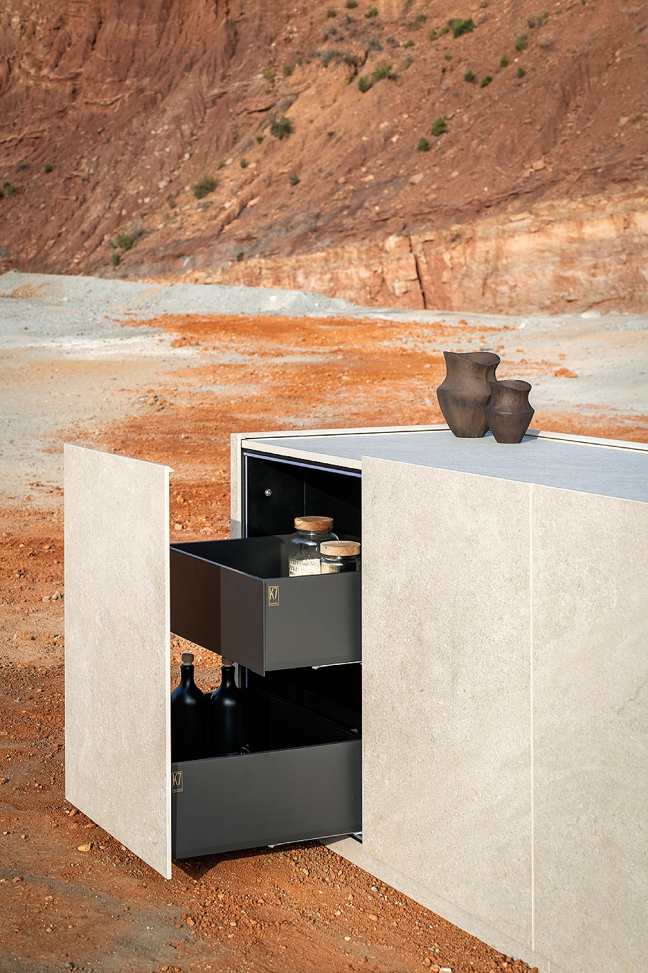 En este escenario, The Rok se erige como la manifestación más depurada de este enfoque. Una cocina de carácter sólido y rotundo, con una fuerte carga escultórica, que condensa los valores esenciales de la marca: rigor formal, desarrollo tecnológico y una relación directa y auténtica con el material. Su lenguaje formal, contenido y más allá de las tendencias, facilita una integración natural tanto en espacios interiores de alto nivel como en ambientes al aire libre, donde el entorno pasa a formar parte activa del diseño.