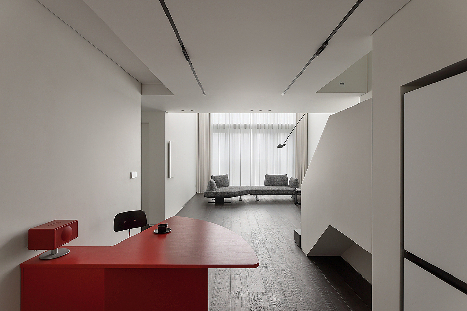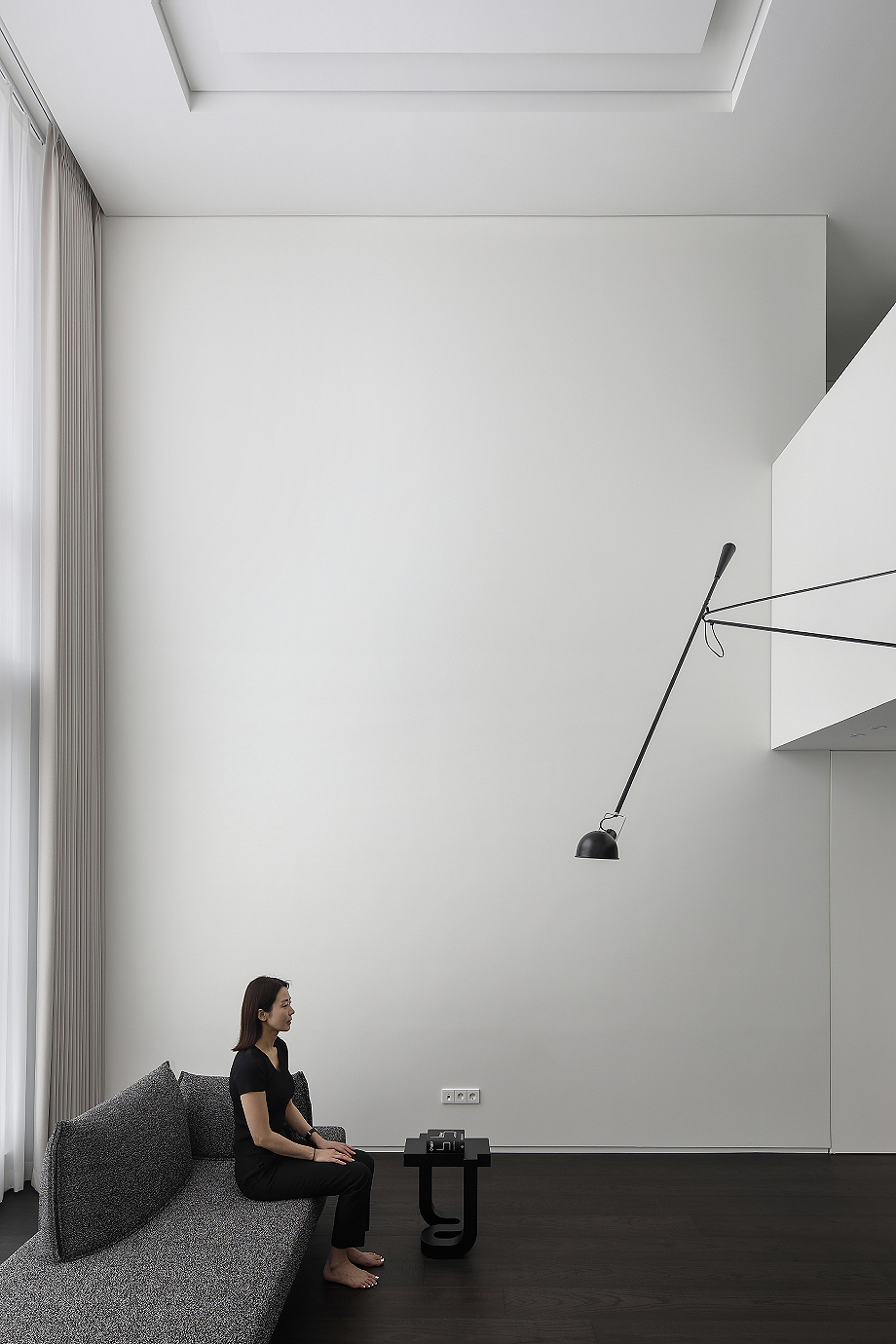En este proyecto residencial, la firma coreana Super Pie Design Studio tomó la verticalidad como concepto central, ya que la firma considera que el espacio vertical es el escenario ideal para el minimalismo. A diferencia de las distribuciones horizontales convencionales, esta vivienda aprovecha los techos altos y las conexiones visuales entre niveles para generar apertura y profundidad espacial, creando interiores ricos en vacíos serenos que trascienden la superficie construida.