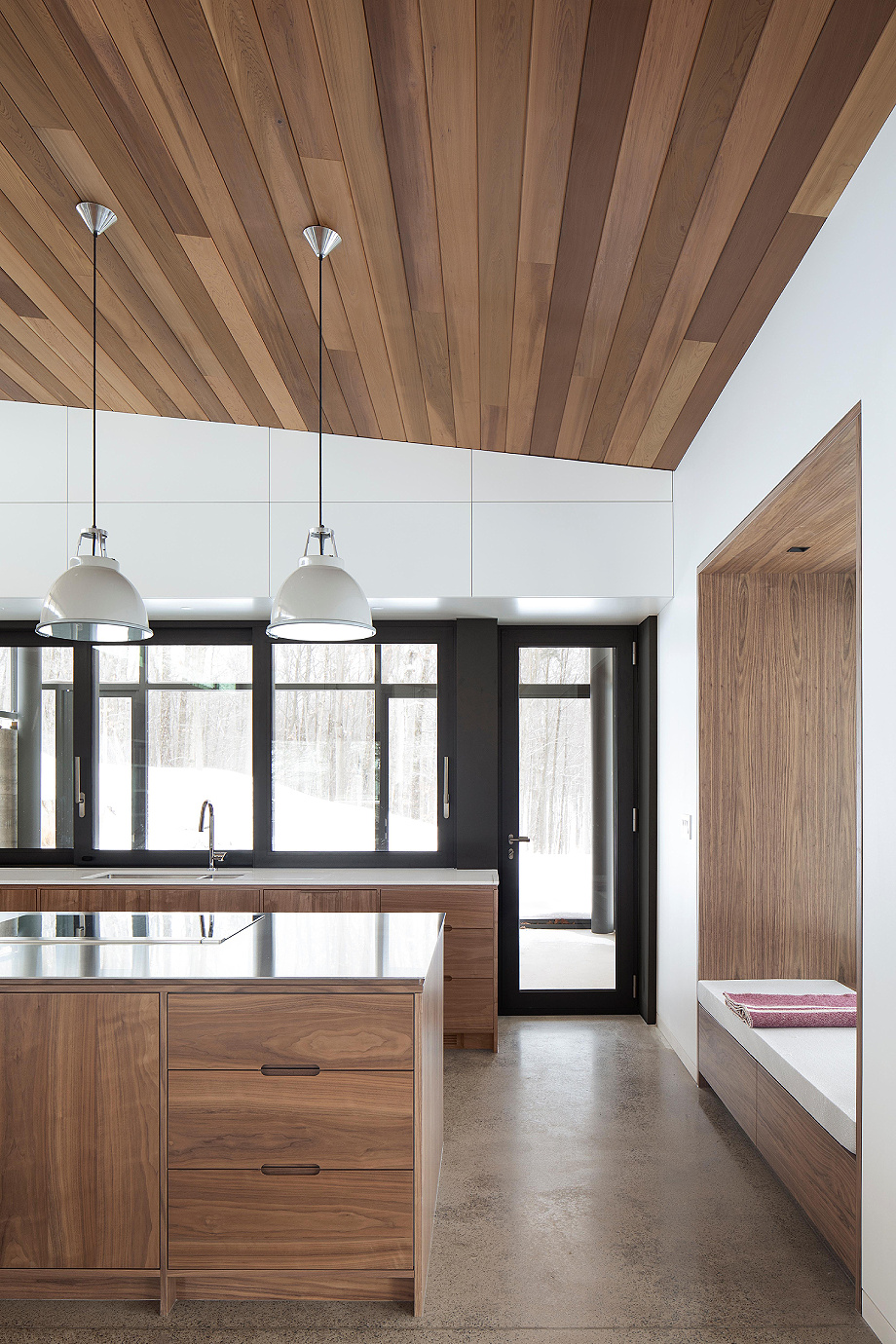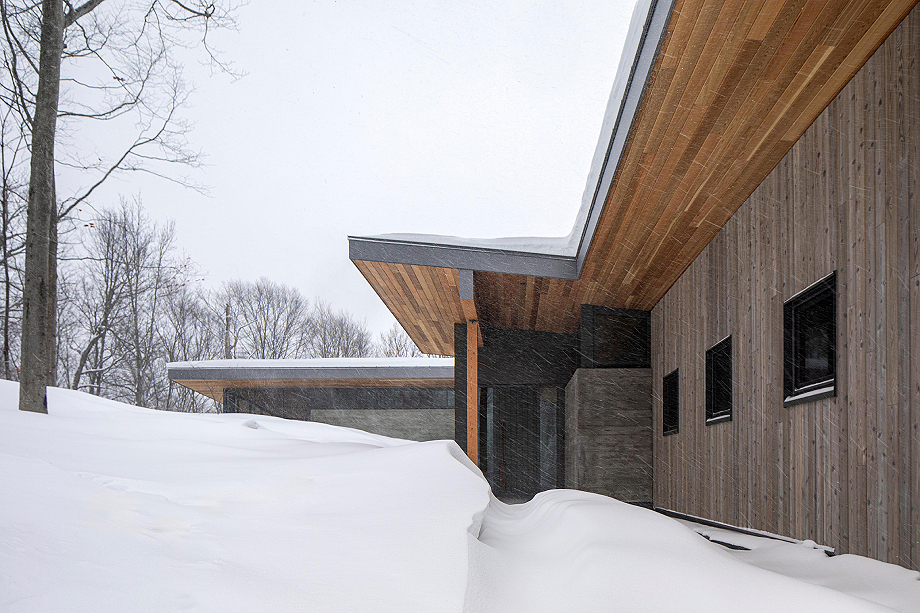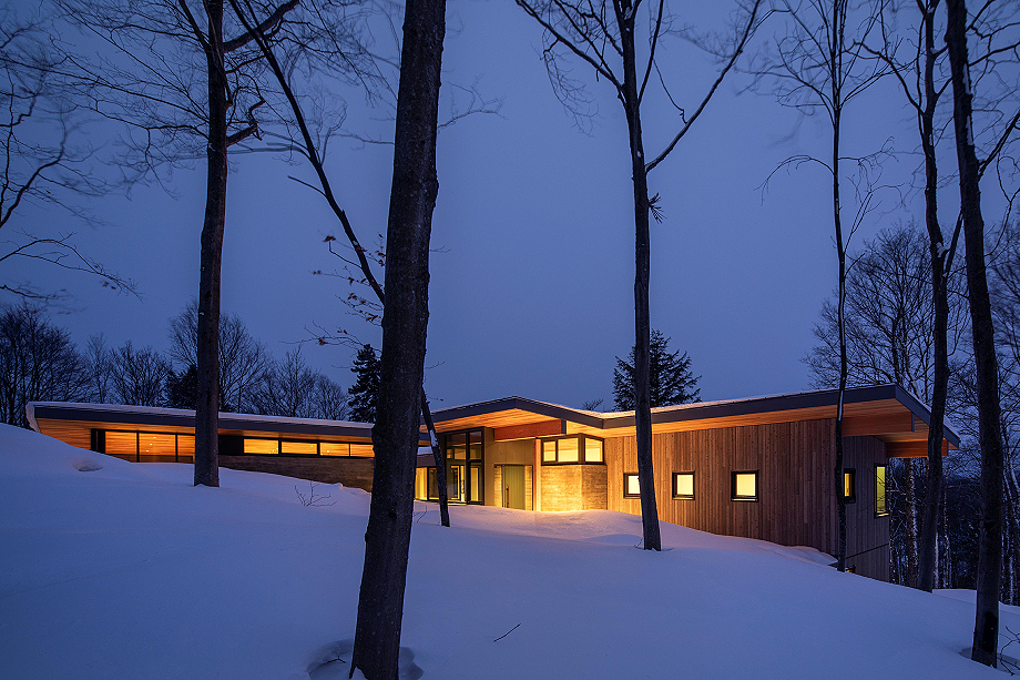 Situada en una propiedad familiar de 3,44 hectáreas en Wentworth-Nord (Quebec / Canadá), esta casa unifamiliar fue concebida para una familia con profundas raíces en la región. Desde sus inicios, el diseño de RobitailleCurtis se inspiró en la historia personal de sus habitantes y en la esencia única del entorno, un denso bosque de arces, abetos, abedules, tsugas y hayas, donde la casa en forma de L se acomoda cuidadosamente en una ladera.