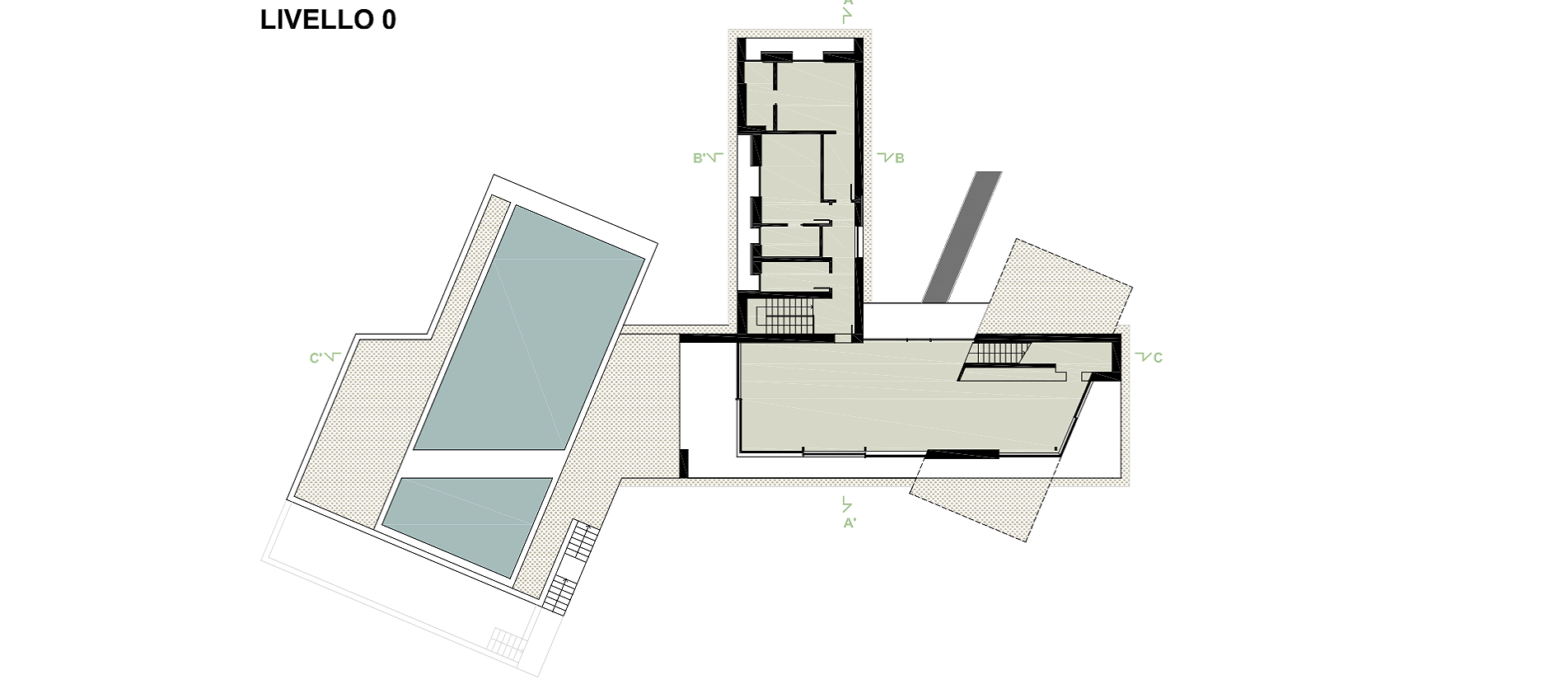 La complejidad del terreno, marcada por su conformación irregular y las limitaciones constructivas, exigió un enfoque a medida. Cada solución estructural fue diseñada en coherencia con el lenguaje arquitectónico, utilizando materiales específicos para cada función. La sección subterránea, íntegramente de hormigón armado, constituye la base del edificio, con muros y pilares capaces de sostener grandes luces manteniendo un espesor reducido. Sobre el nivel del suelo, un sistema híbrido de madera y acero combina ligereza y resistencia, permitiendo voladizos de más de cinco metros mediante una estructura de acero oculta, invisible pero esencial para el equilibrio general.
