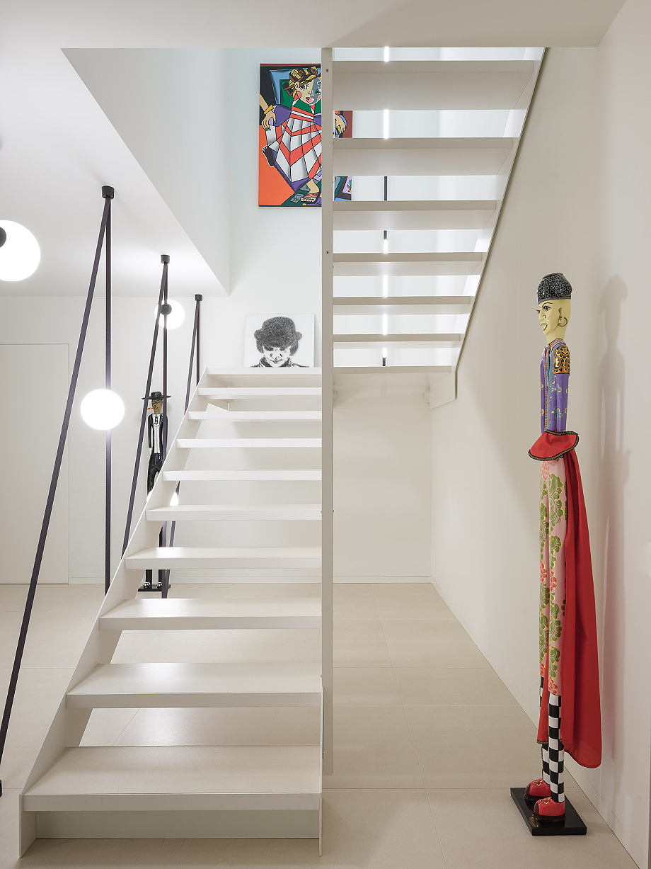 Desde el punto de vista energético, la casa se ha diseñado para un bajo consumo: una envolvente hermética de alto rendimiento elimina los puentes térmicos, mientras que las ventanas y los sistemas de sombreado se dimensionan mediante simulaciones dinámicas. La ventilación mecánica con recuperación de calor y deshumidificación, combinada con aire acondicionado radiante de baja inducción, asegura confort y calidad del aire interior.