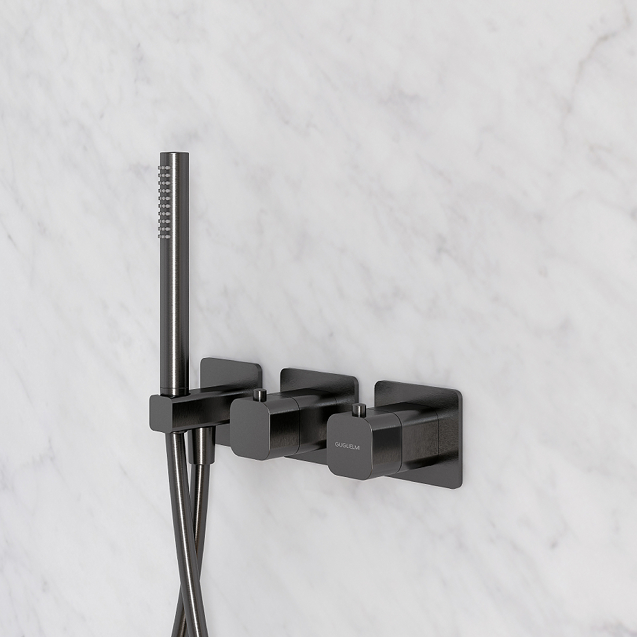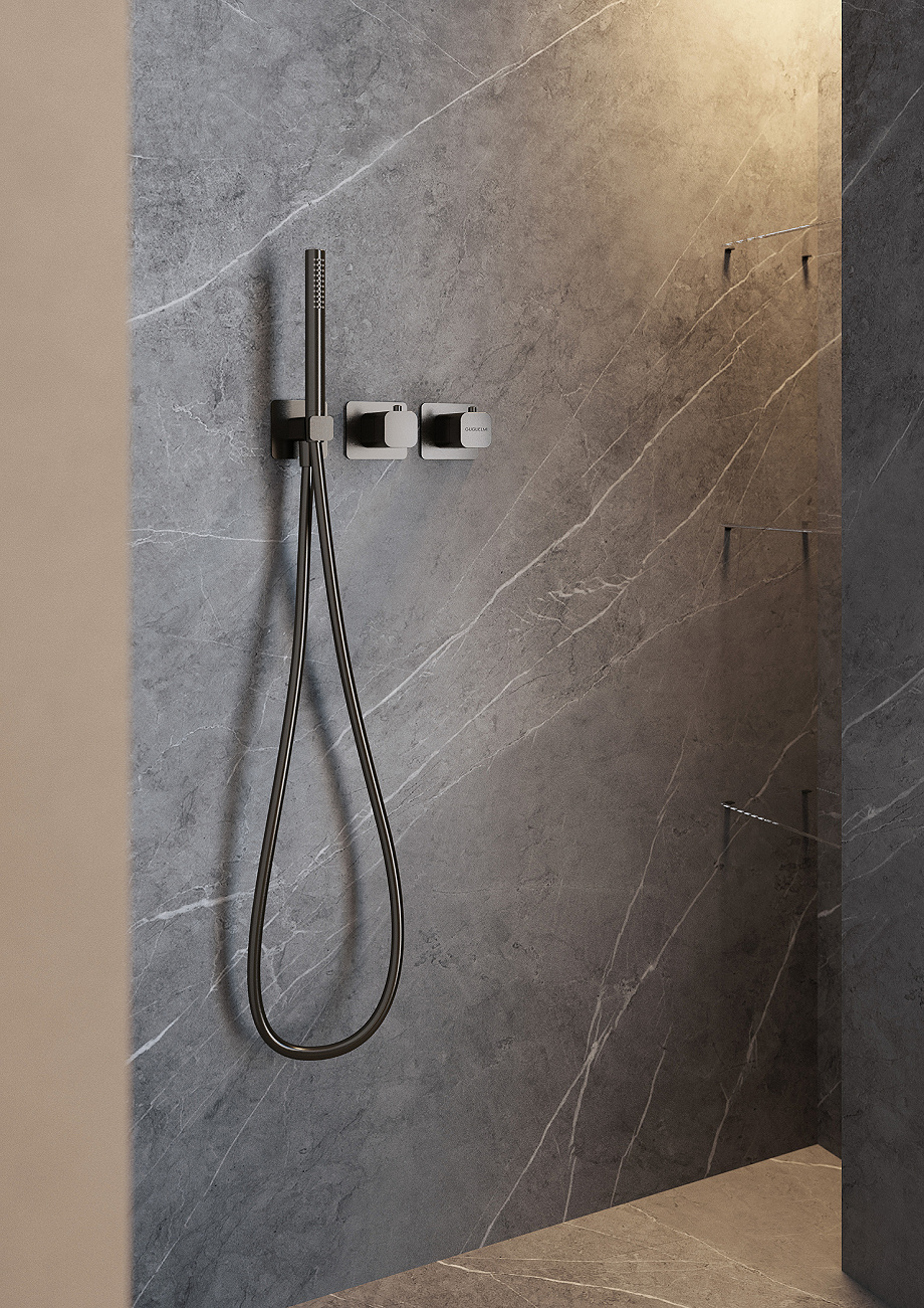 La serie GZero se articula como un sistema completo capaz de resolver todas las funciones del baño con un único lenguaje formal. Incluye mezcladores de lavabo -sobre encimera, murales o a tres orificios-, grifería para ducha y bañera, mezcladores termostáticos empotrados y soluciones modulares que permiten configuraciones a medida. Placas y elementos personalizables facilitan la integración con materiales nobles como mármol, piedra o cristal, subrayando su carácter arquitectónico.
