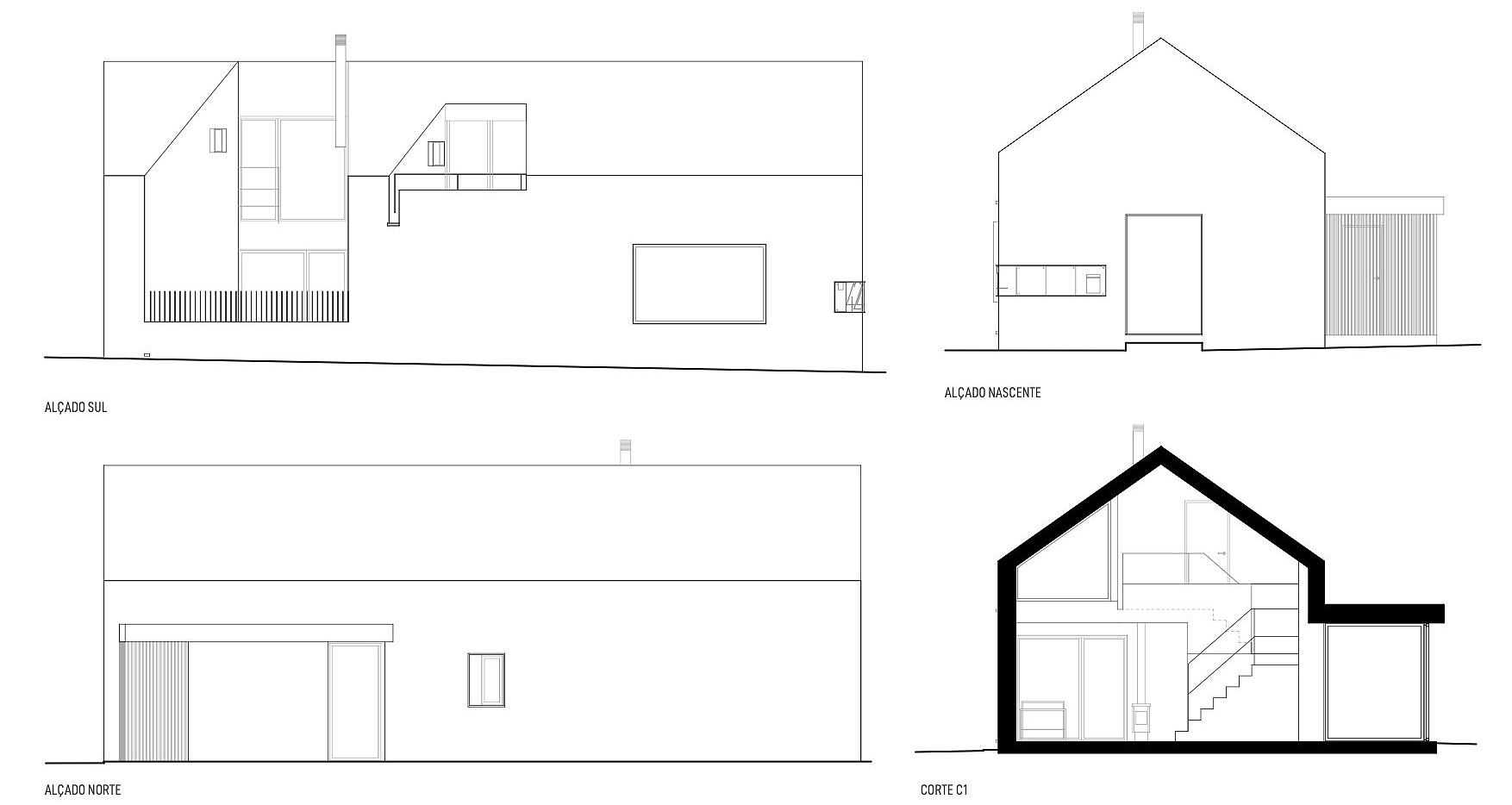 Al no existir un cliente final, el proyecto se centró en el objeto arquitectónico en sí: preservar la memoria de la casa y su presencia en su contexto, explorar la relación entre ella y la vida familiar en un espacio compacto, y garantizar el confort y la calidad espacial en cada uno de los ambientes. Además, las circunstancias permitieron que la Casinha se convirtiera en un ejercicio experimental, tanto en diseño como en soluciones técnicas y constructivas. La carpintería metálica exterior -buzón, barandillas, chimenea y leñero- refleja un cuidado artesanal, mientras que las soluciones constructivas aseguran la continuidad entre paredes y cubierta.