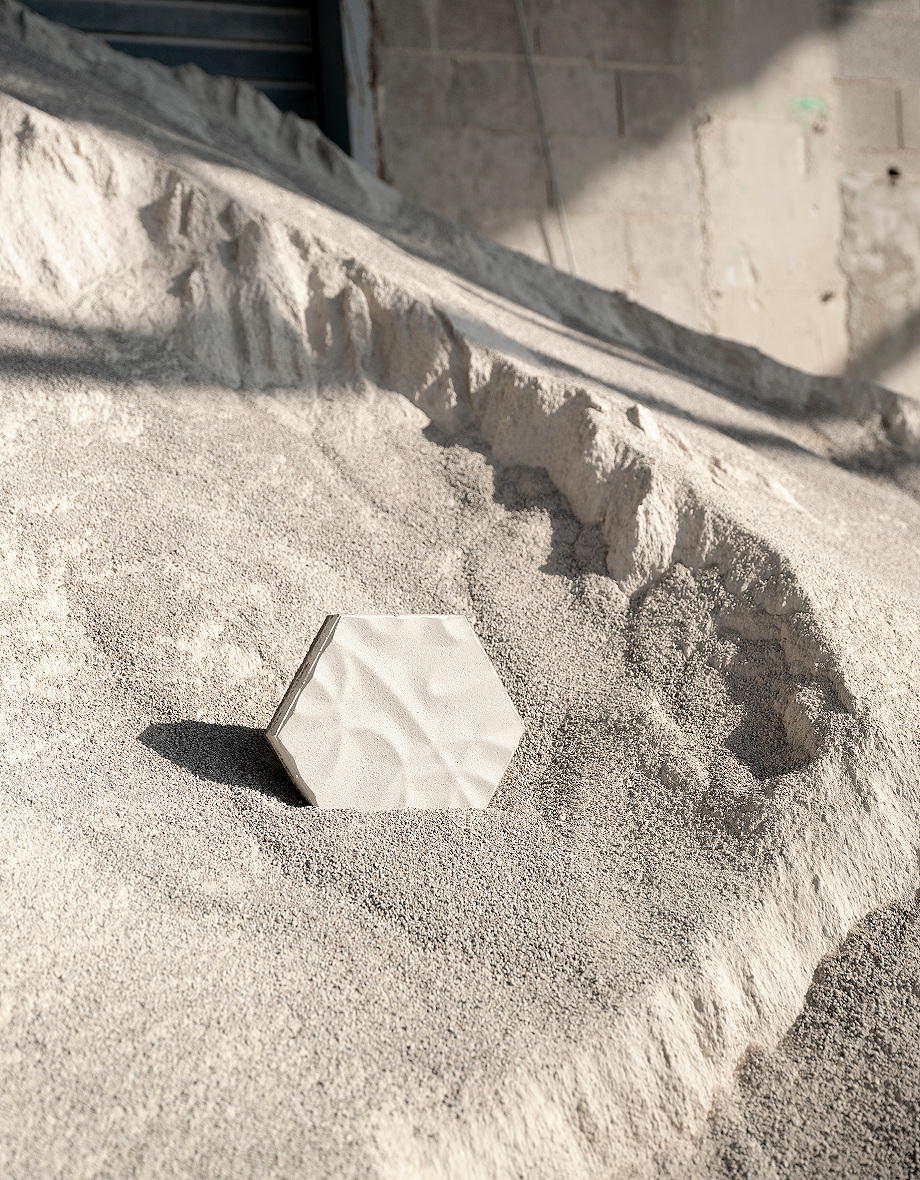 Sand, el primer diseño de Morph XS para ICÓNICO Series, toma como punto de partida el célebre pavimento hexagonal que Antoni Gaudí diseñó hacia 1904, decorado con relieves de caracolas, algas y estrellas de mar. Aquel mosaico, que aún permanece en el Paseo de Gracia de Barcelona como una de sus señas de identidad, sirve ahora como referencia formal para esta nueva propuesta.