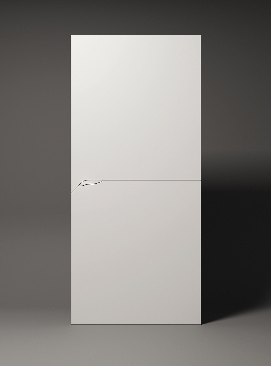Morph XS presenta también dos diseños de puertas concebidos para acompañar la colección de manetas. Son intencionadamente opuestos, demostrando que el minimalismo puede convivir con lo contrario sin perder elegancia. La primera -Line- se caracteriza por un trazo limpio, mientras que la segunda -Layers- busca ser la reinterpretación paramétrica de una talla modernista. Las sombras que proyecta, trabajadas por un maestro ebanista contemporáneo, generan una imagen casi vegetal que dialoga con la geometría de la puerta y del espacio que habita.